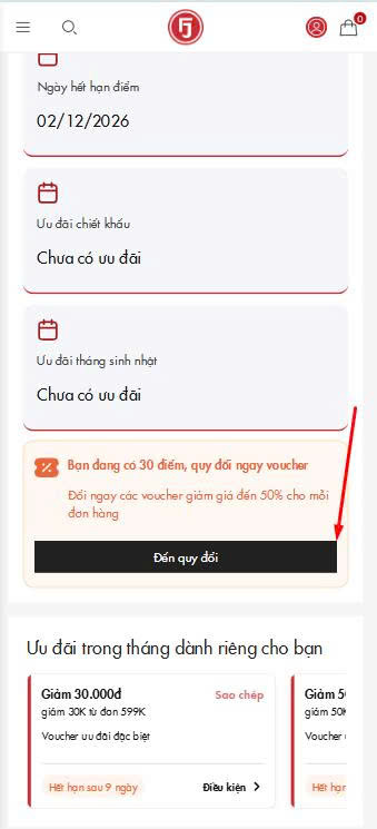 Dưới đây là hướng dẫn chi tiết cách quy đổi điểm sang voucher: