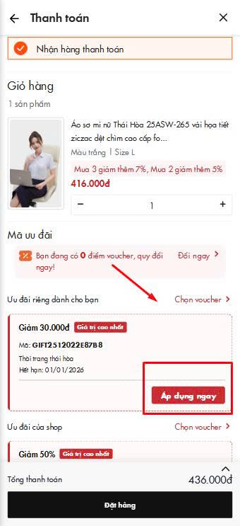 🔎 Bước 5: Sử dụng voucher khi thanh toán