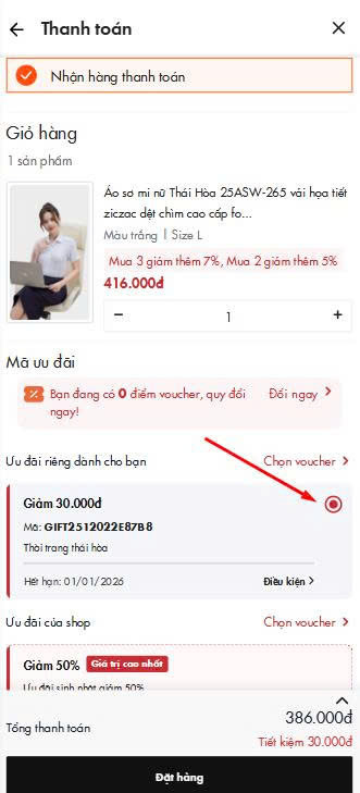 🔎 Bước 4: Chọn voucher 30.000đ