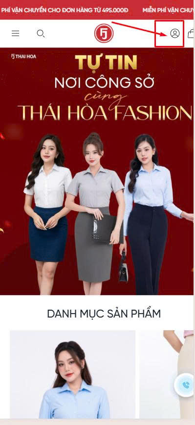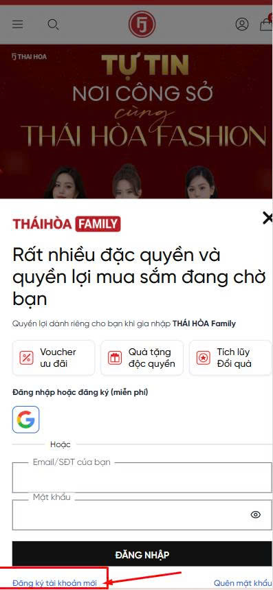 Truy cập website: thoitrangthaihoa.com -> menu trên góc phải có icon hình khách hàng nhấp vào để đăng ký hoặc đăng nhập