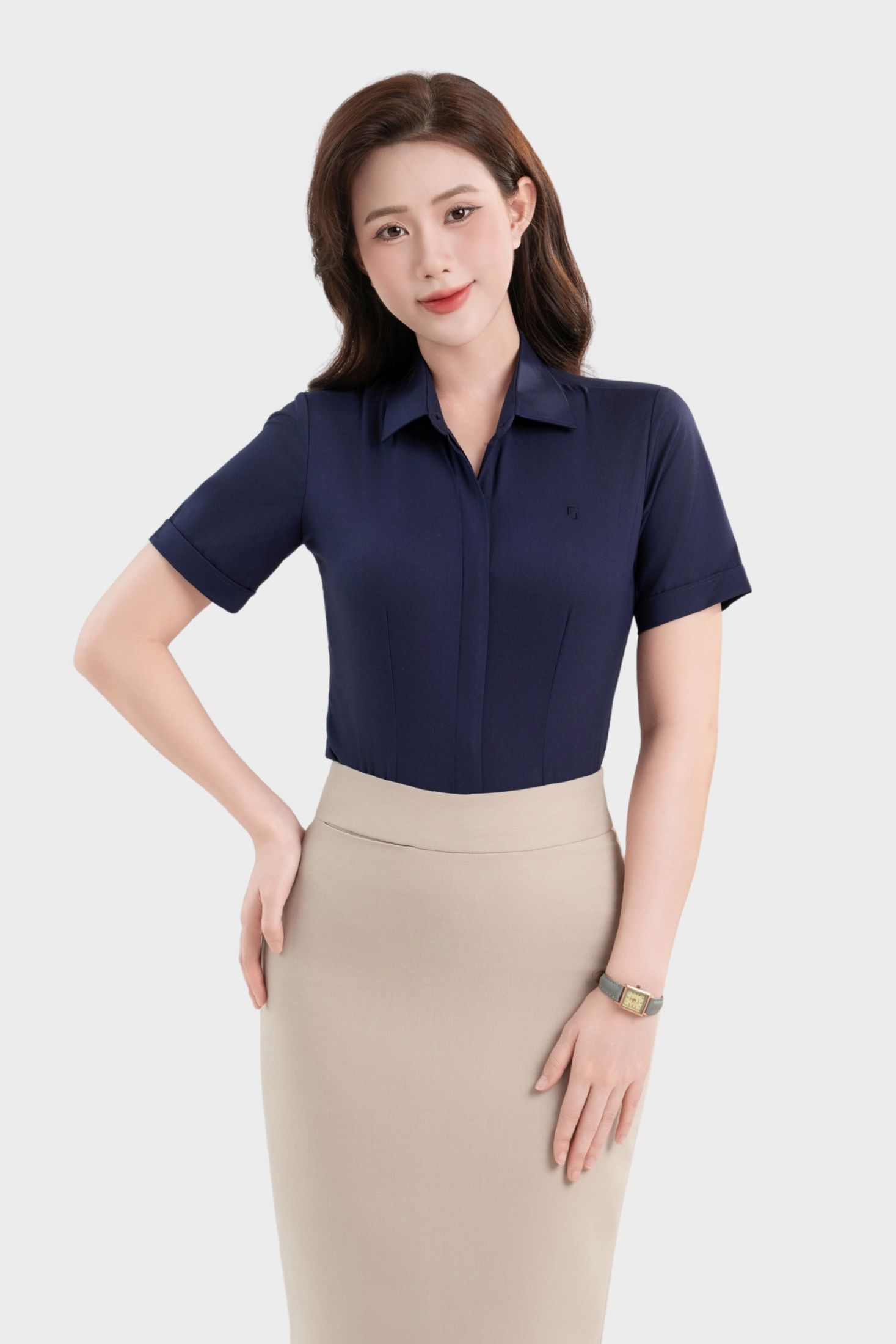 - Áo sơ mi 25ASW-286 chất liệu vải modal trơn cao cấp ngắn tay dáng slimfit cổ đức Thái Hòa