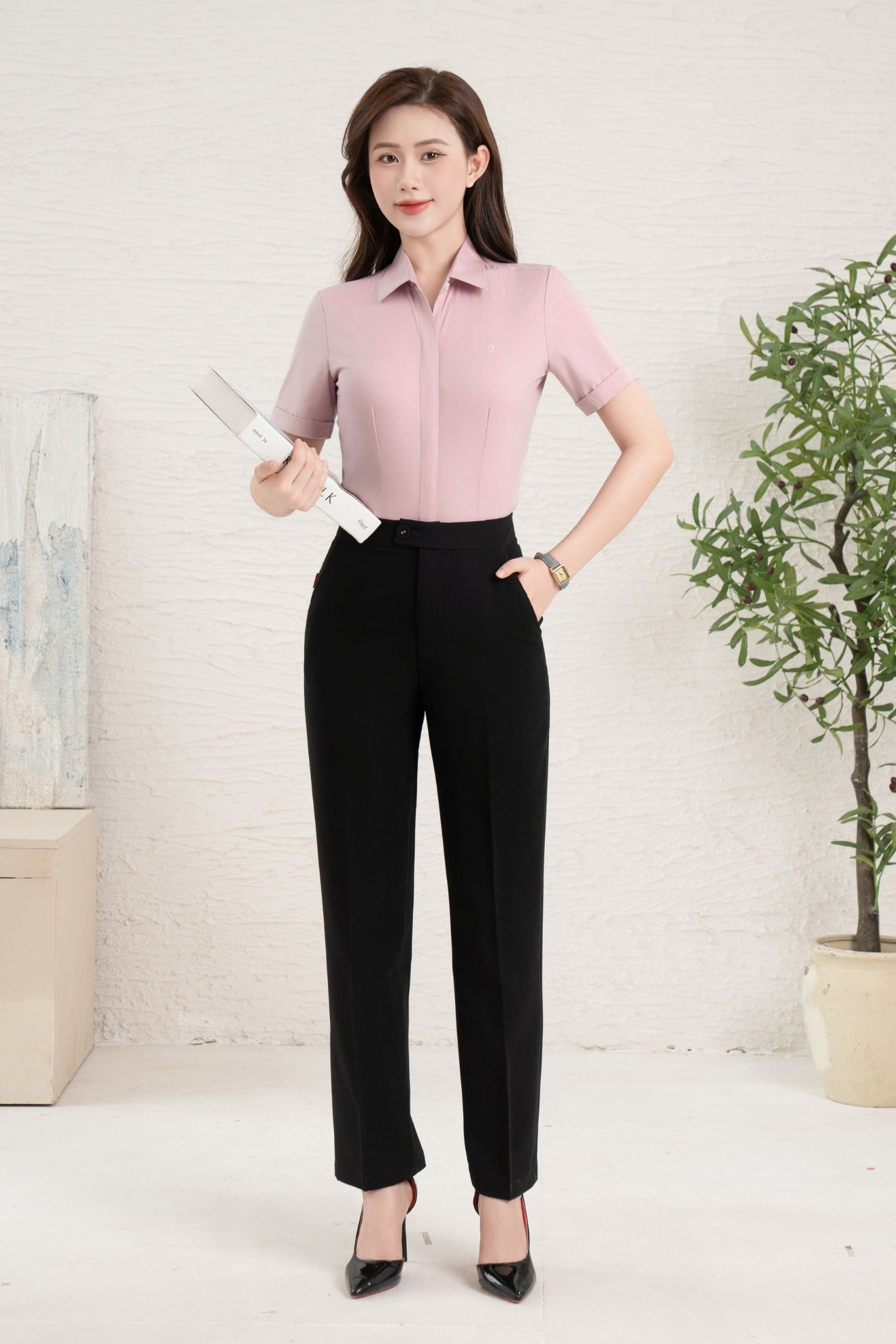 Quần ống suông nữ 25QAW-274 chất liệu vỏ hàu cạp cao 5 phân 2 cúc bản cạp trên rốn Thái Hòa