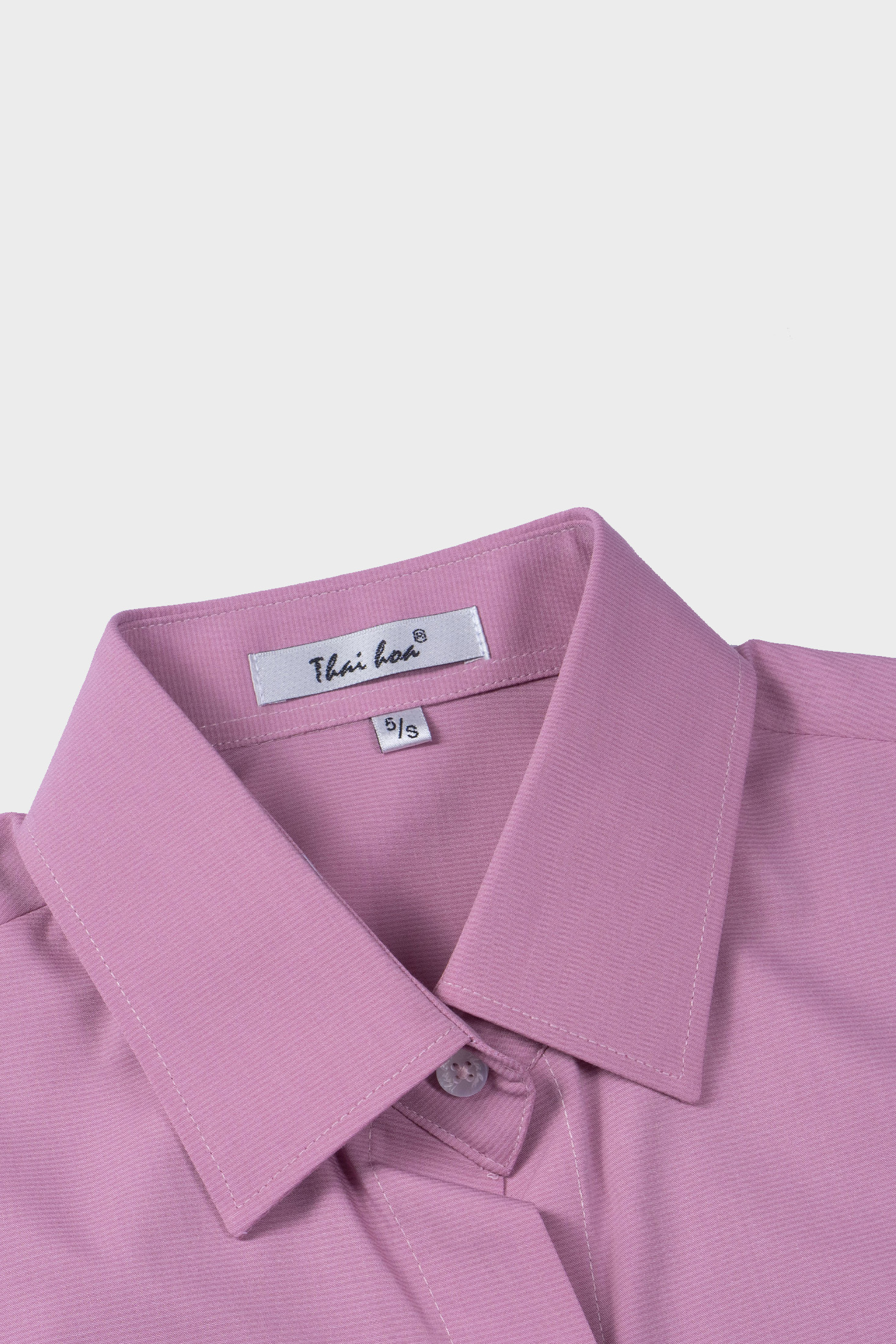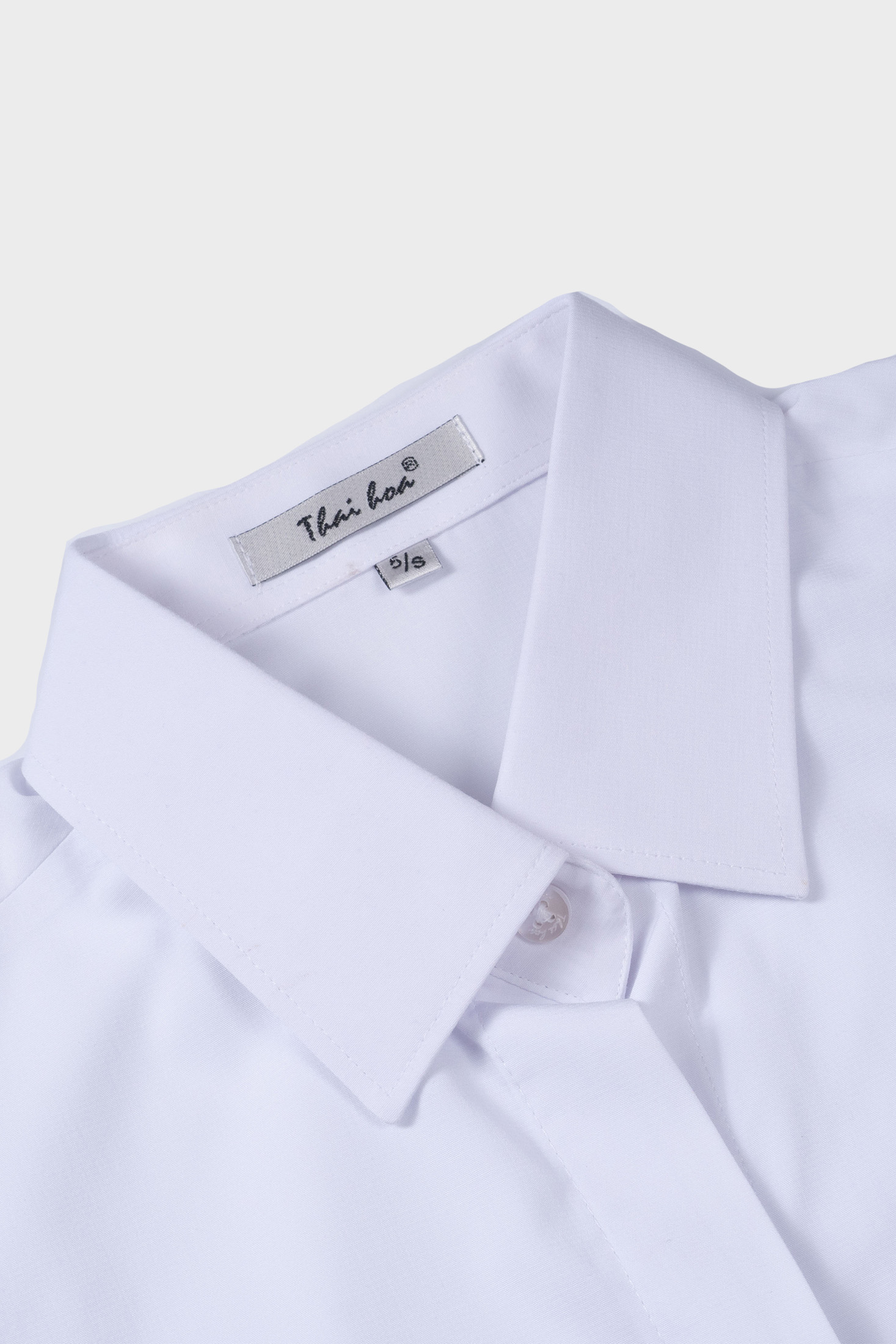 Áo sơ mi nữ 24ASW-246 ngắn tay sợi cotton phối poly vải trơn cao cấp nẹp khuy chiết ly eo Thái Hòa