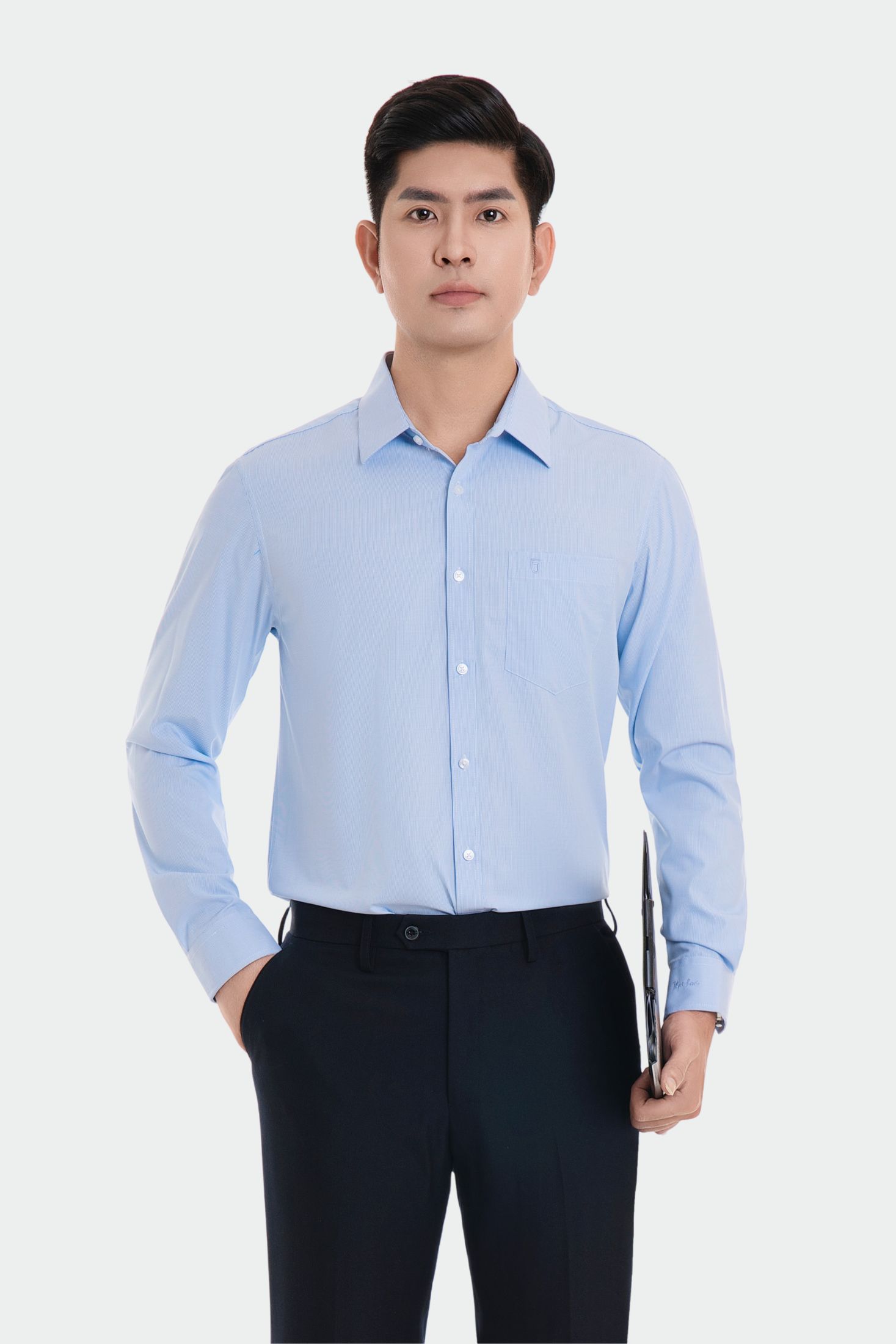 ✅Cách chọn size: Áo sơ mi nam dài tay 23ASM-986 chất liệu cotton kẻ sọc xanh dáng suông đơn giản Thái Hòa
