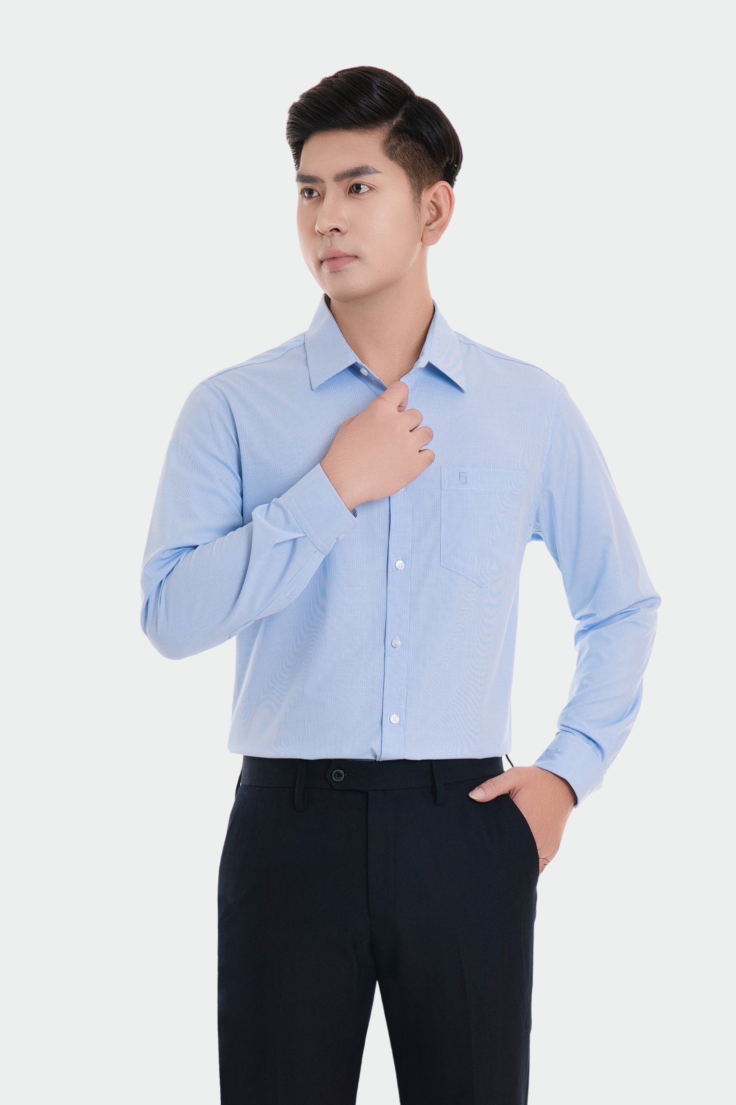 - Áo sơ mi nam dài tay 23ASM-986 chất liệu cotton kẻ sọc xanh dáng suông đơn giản Thái Hòa