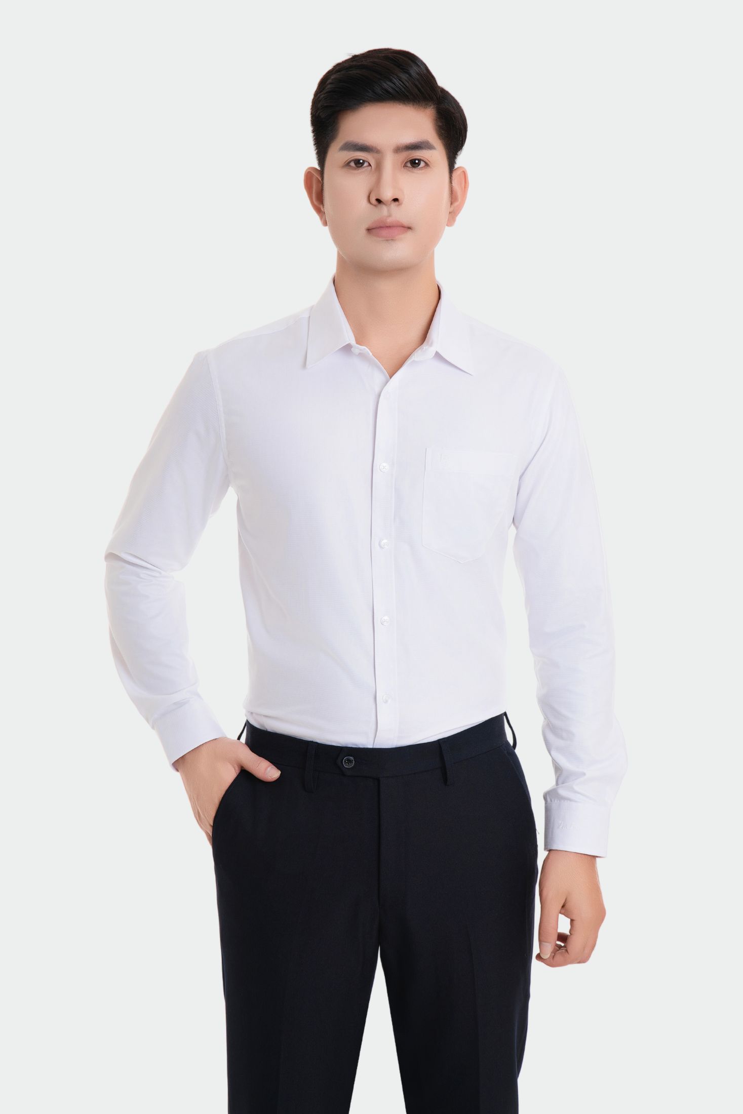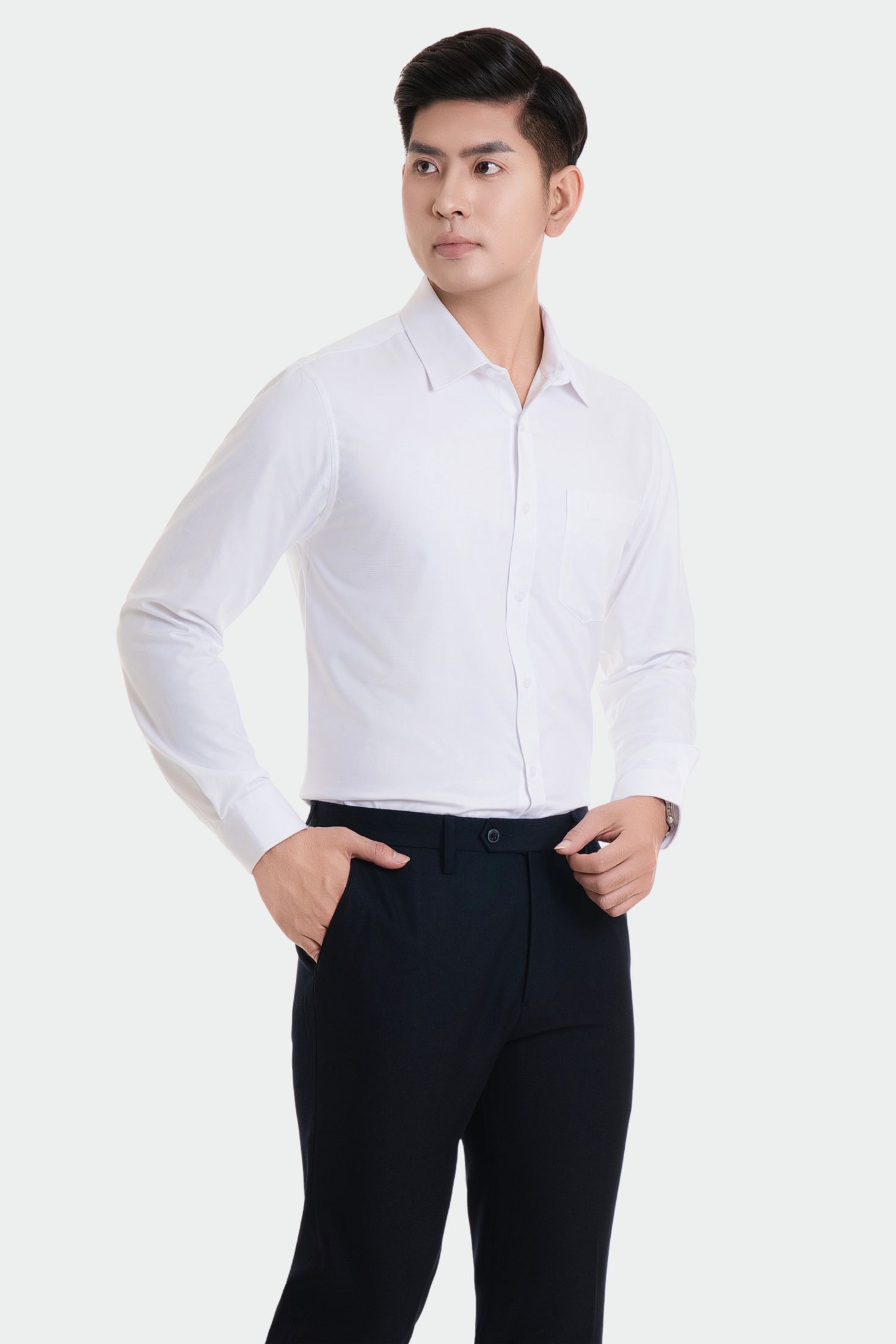 Áo sơ mi 25ASW-287 chất liệu vải modal trơn cao cấp dài tay dáng slimfit có nẹp khuy Thái Hòa