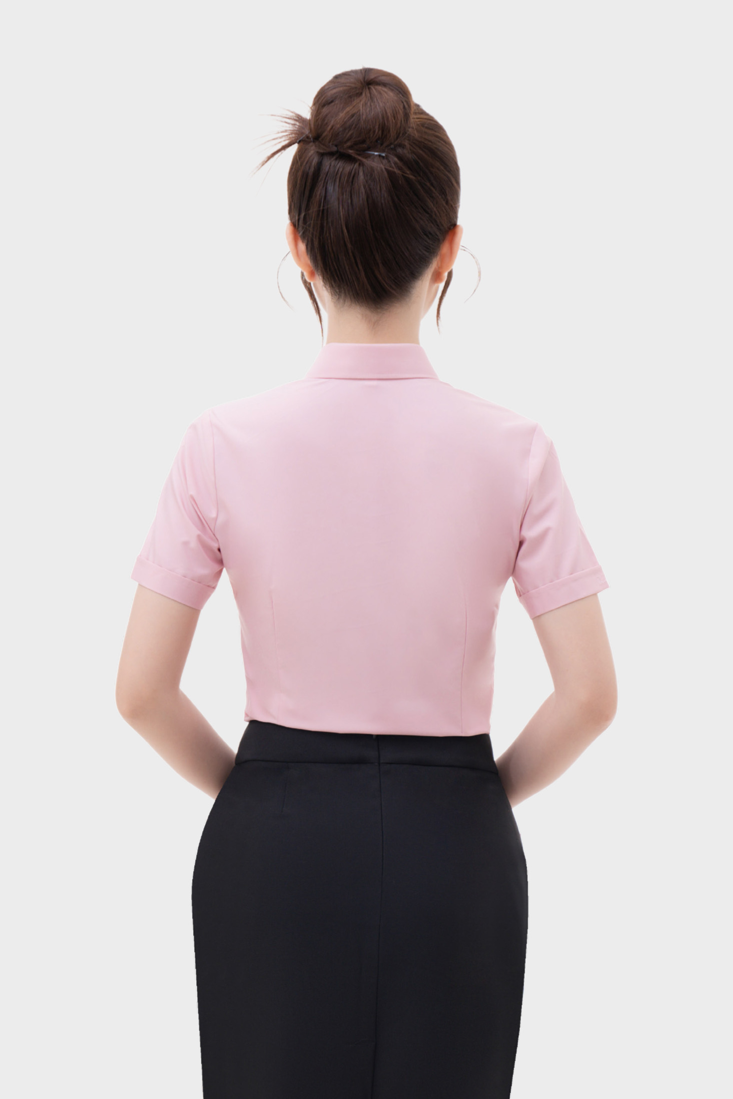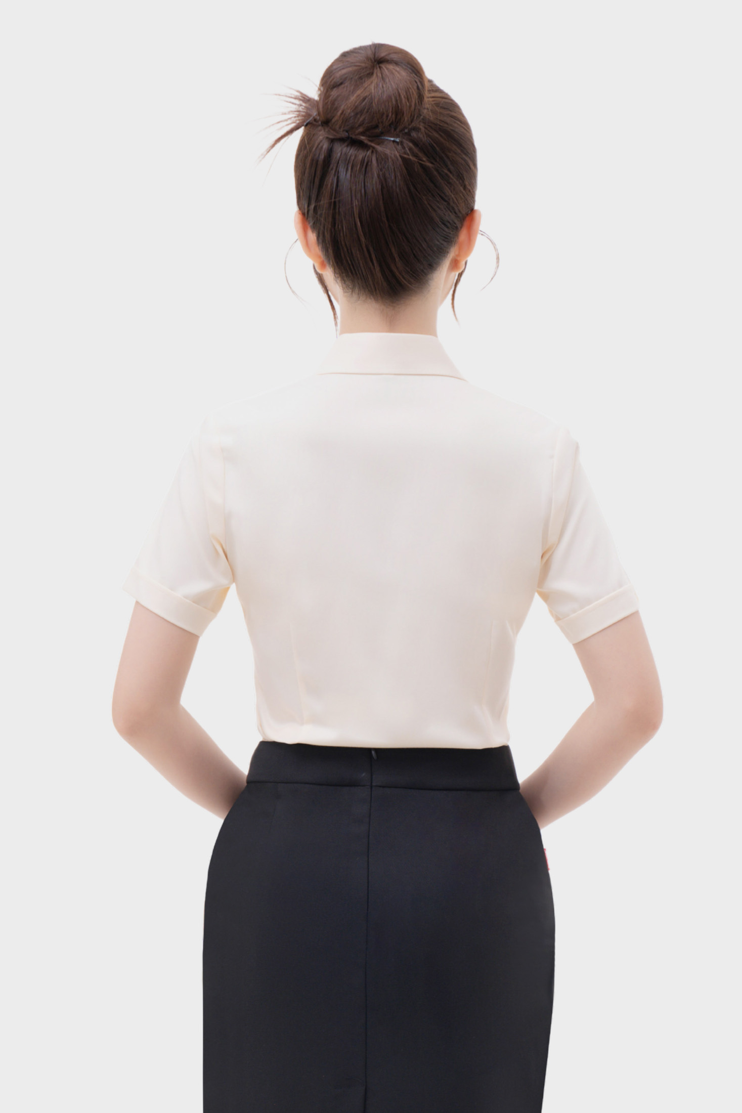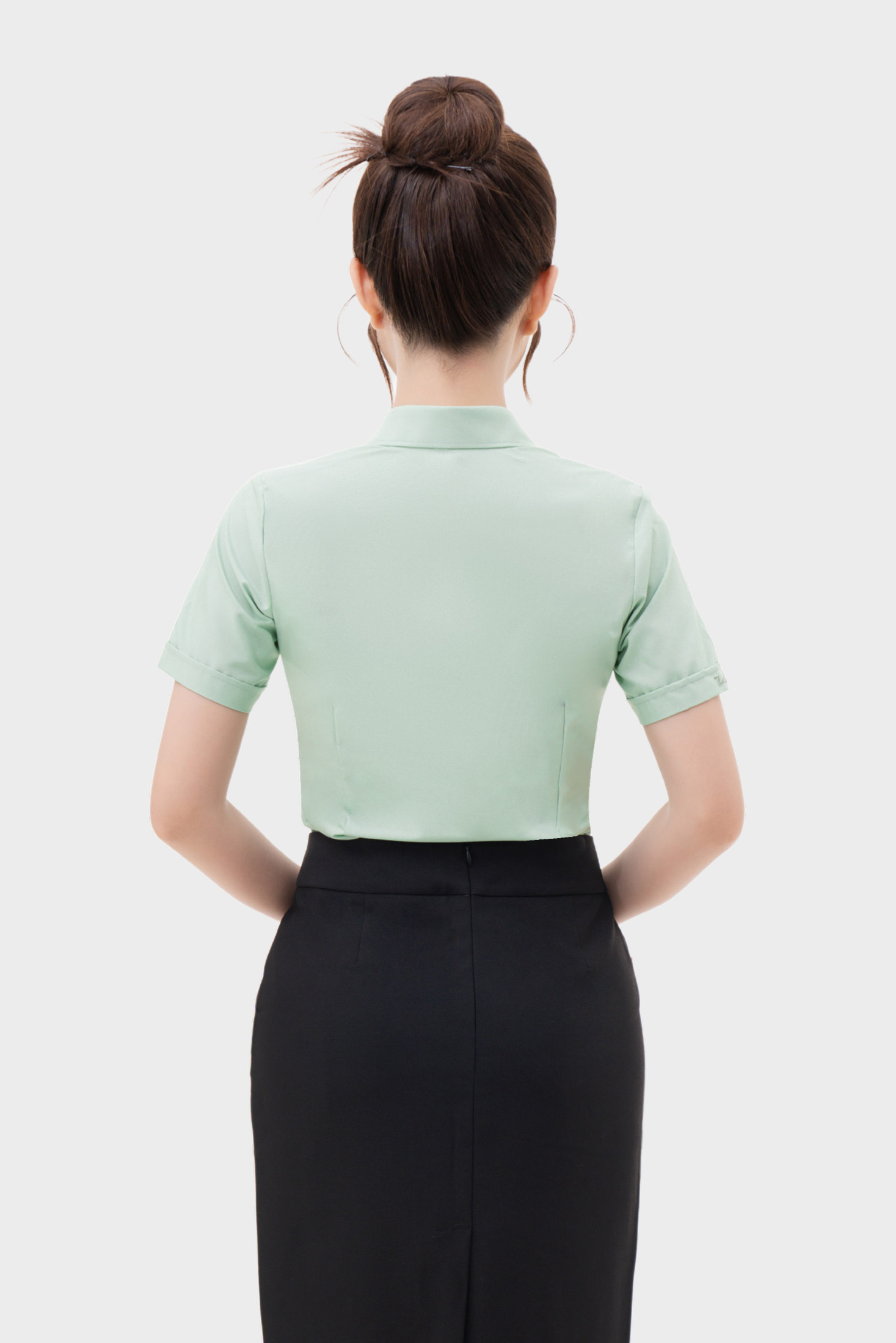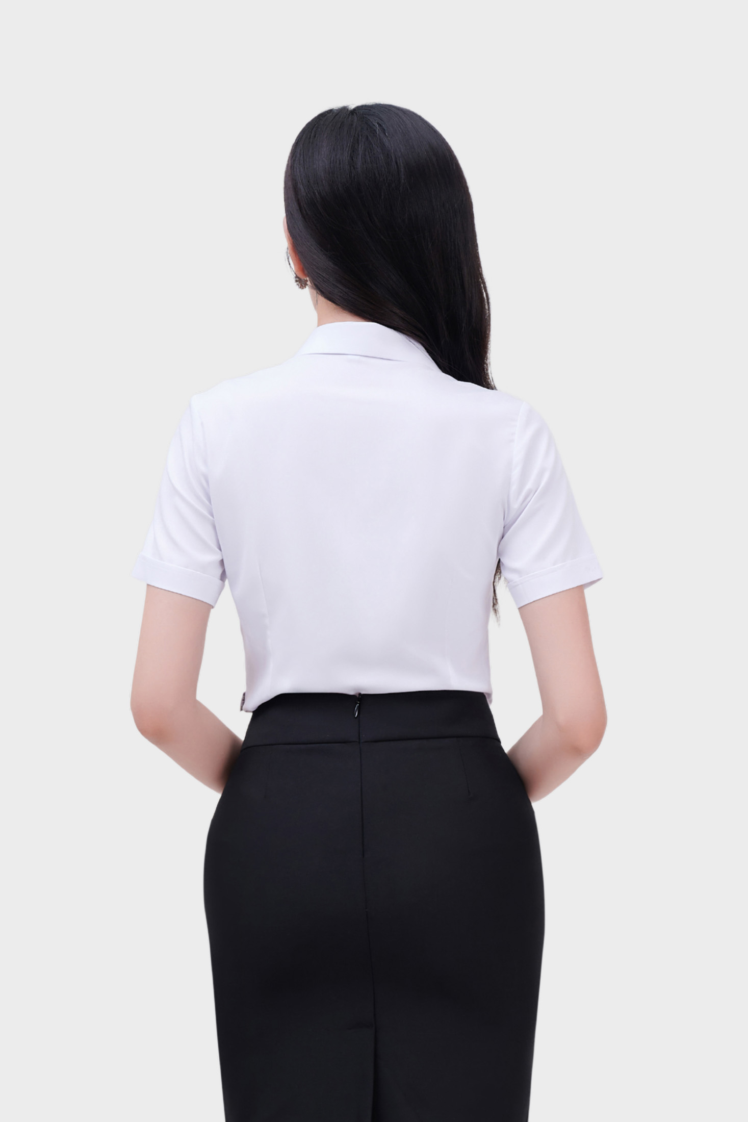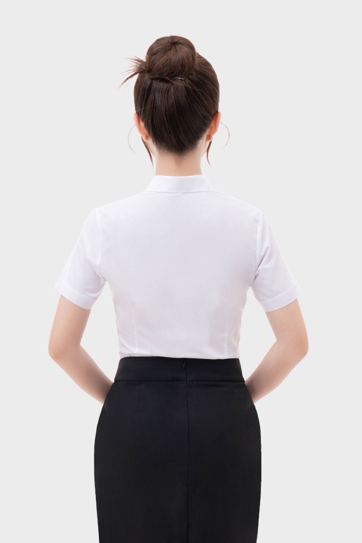 Áo sơ mi nữ ngắn tay phom slimft cổ đức nẹp khuy che cúc mã 25CVW-289