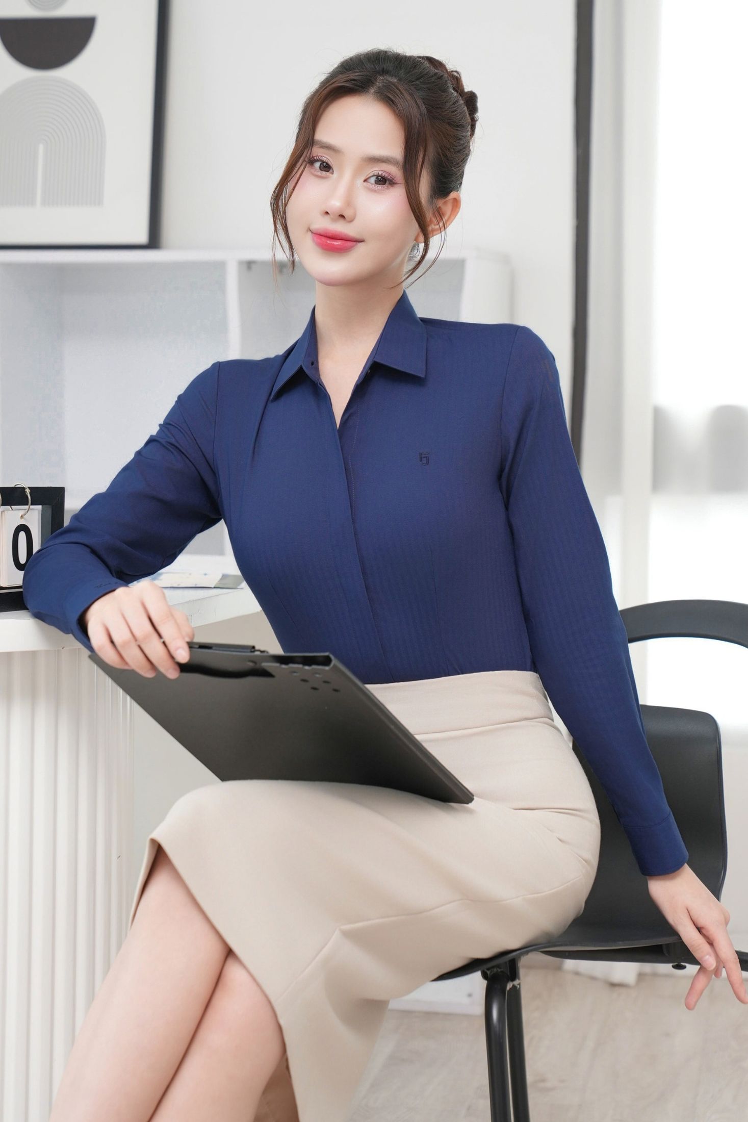 - Áo sơ mi nữ 25ASW-283 dài tay chất liệu modal họa tiết gân sọc form slimfit có nẹp khuy Thái Hòa