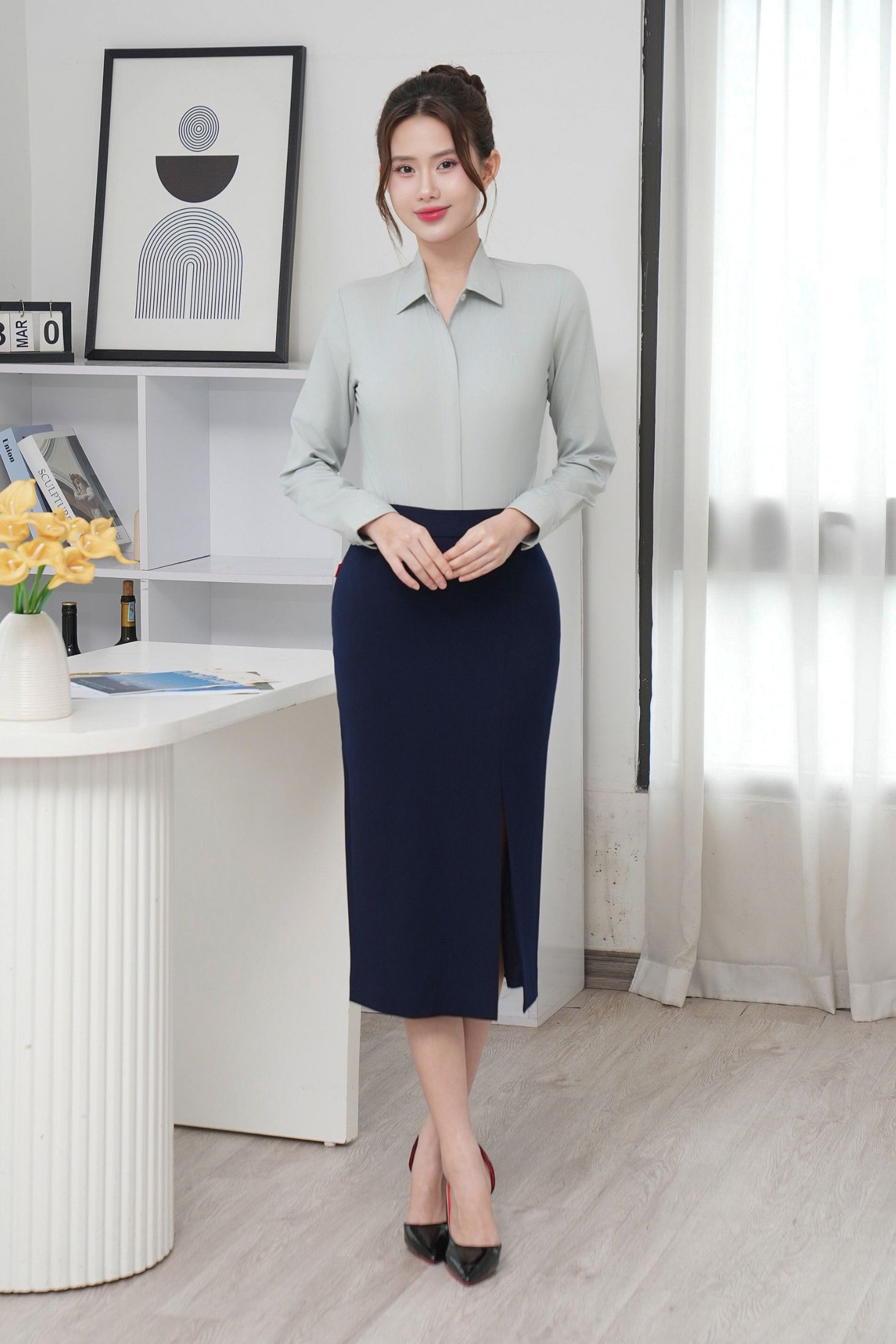 Chân váy bút chì nữ 2 lớp 25CVW-279 form bút chì ôm cạp cao xẻ trước chất liệu cao cấp Thái Hòa