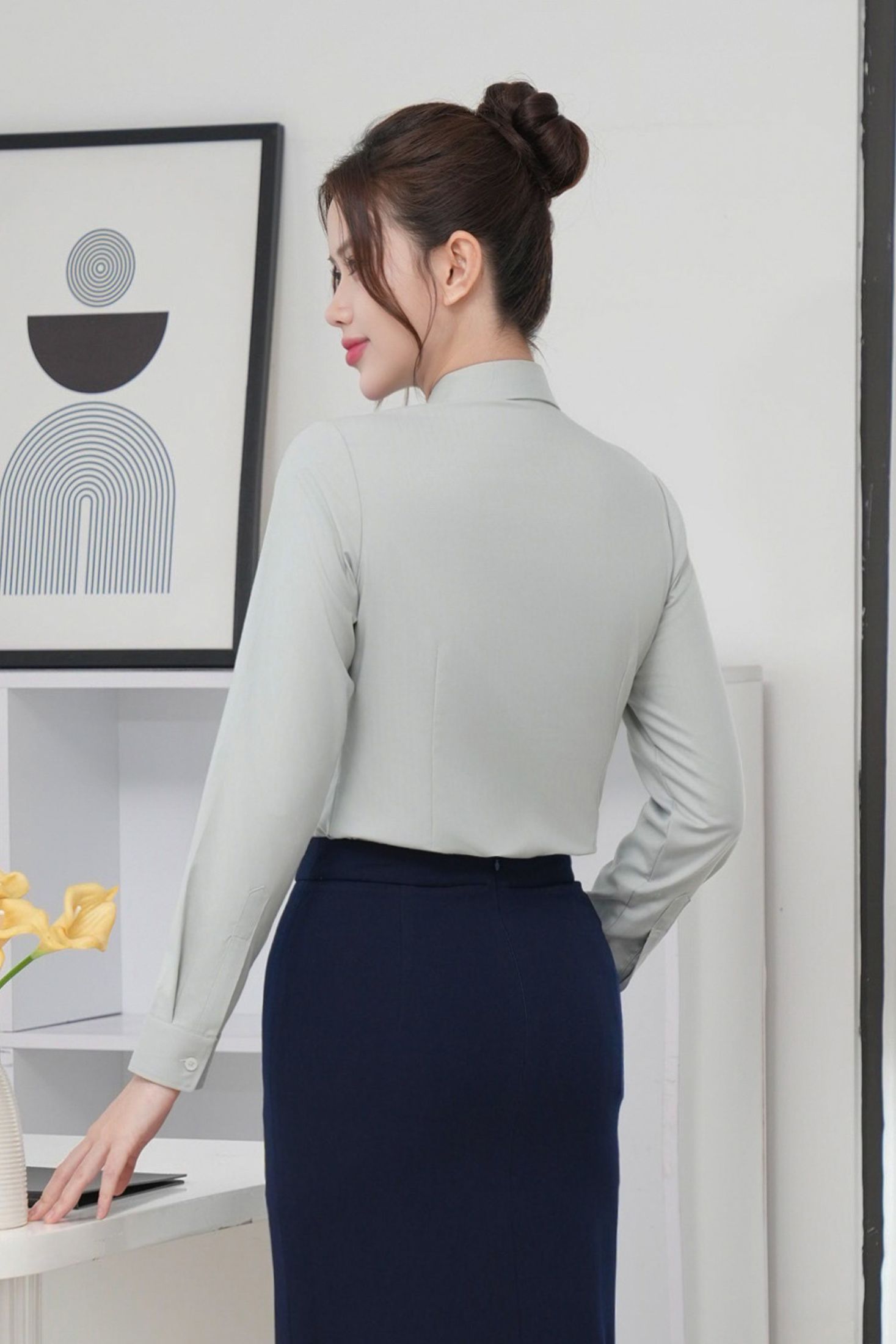Áo sơ mi nữ ngắn tay phom slimft cổ đức nẹp khuy che cúc mã 25CVW-289