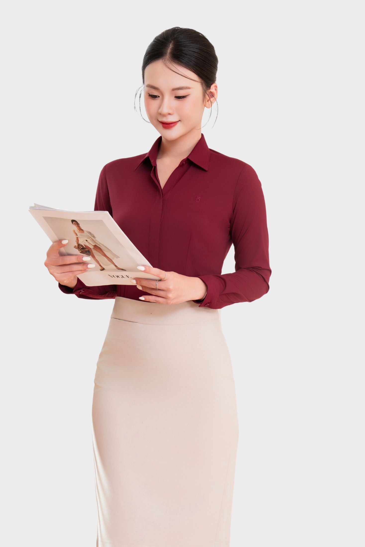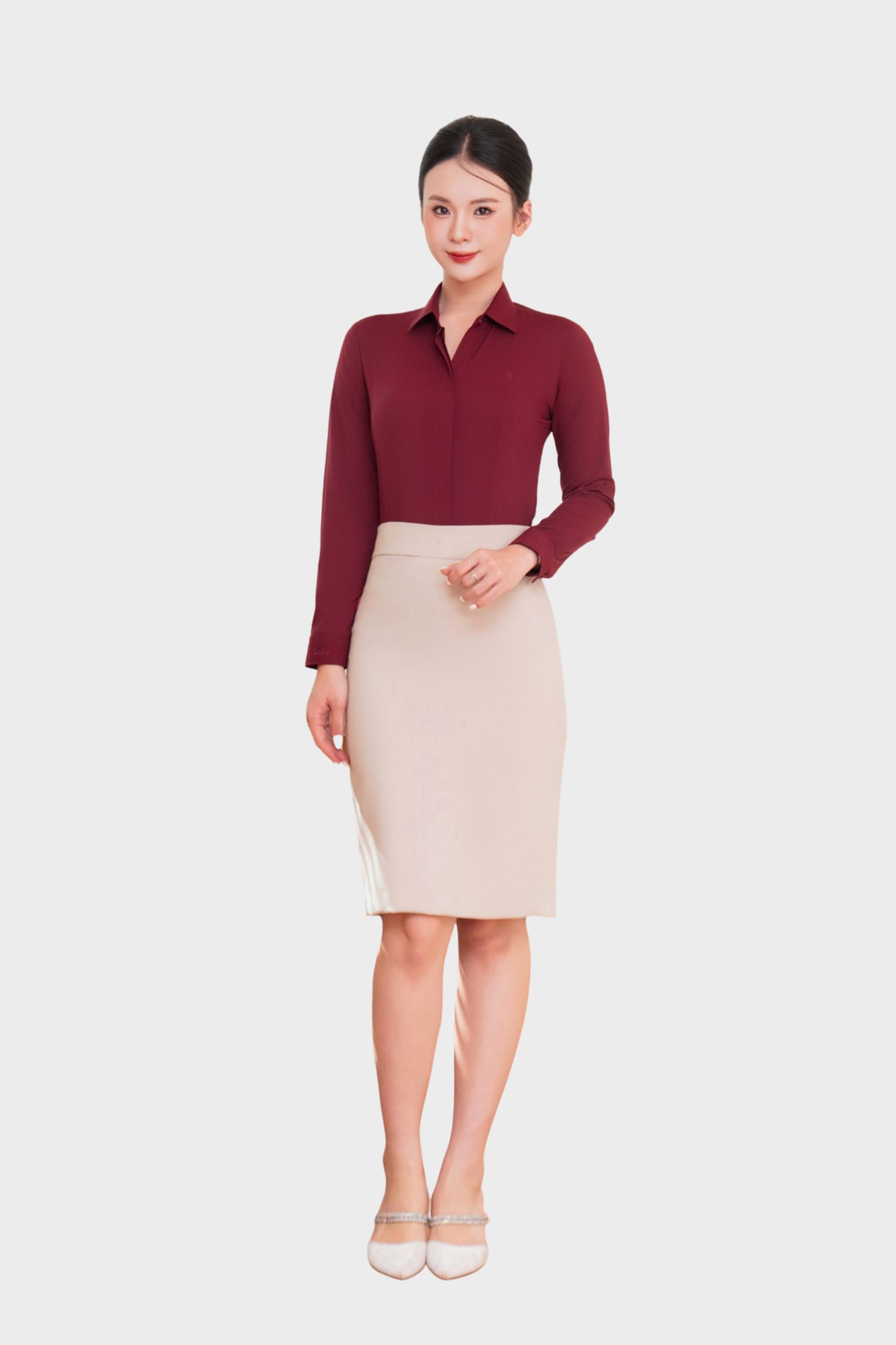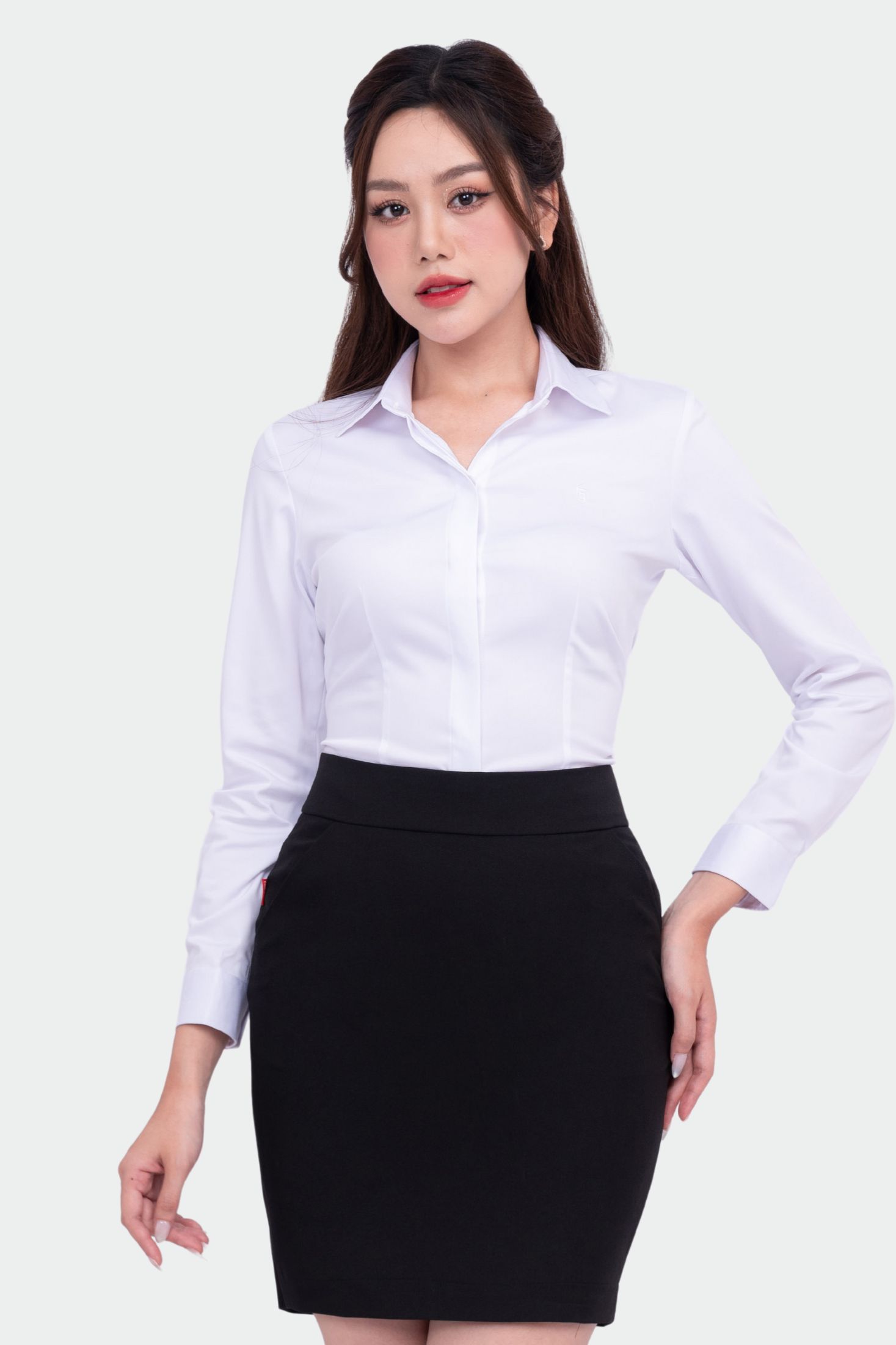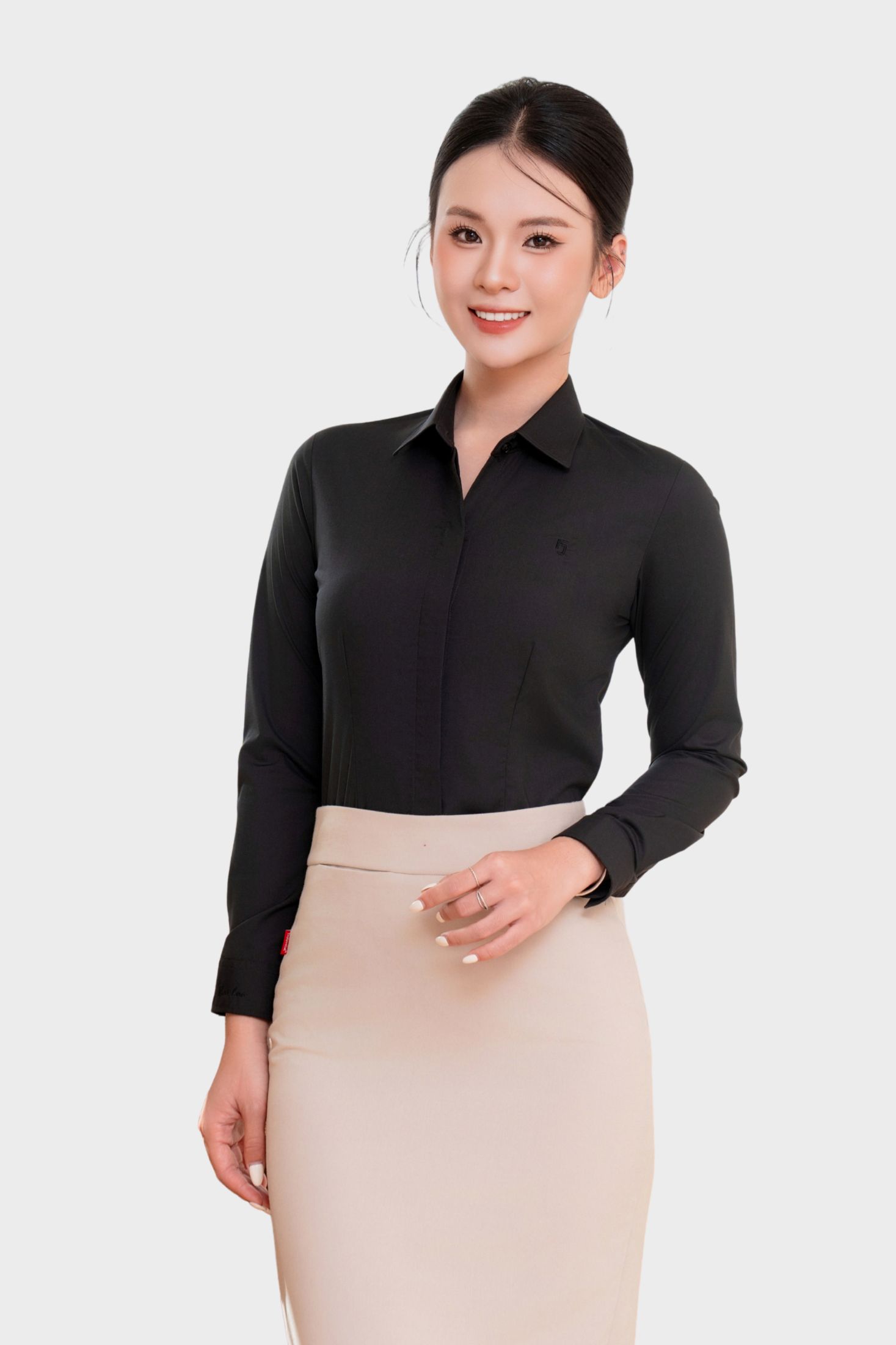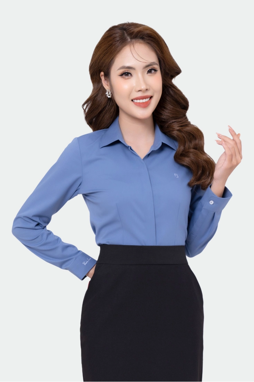 - Áo Sơ Mi Nữ Công Sở Dài Tay Giấu Cúc Cotton Phối Poly Thái Hòa 23ASW-216