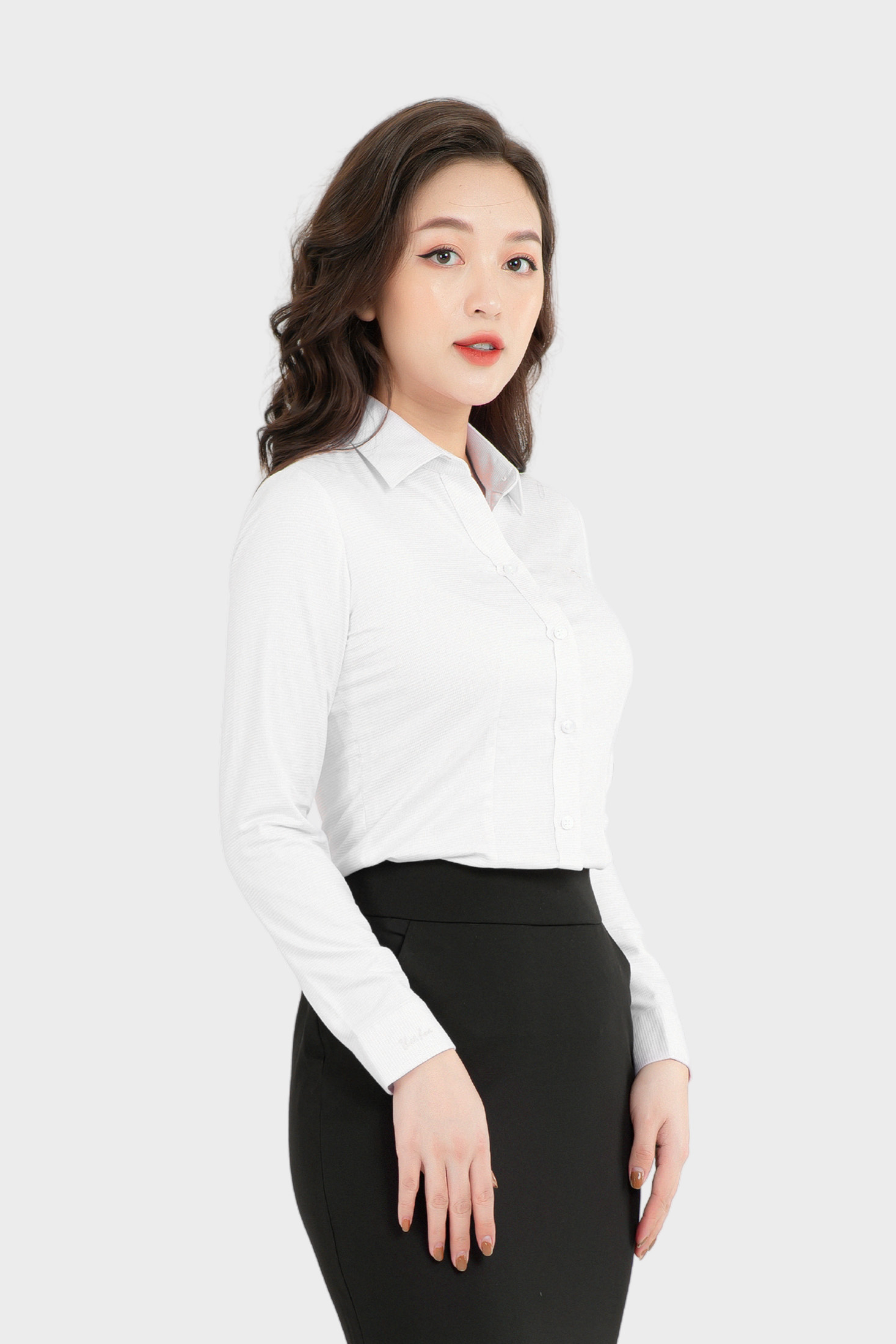 Áo sơ mi nữ Thái Hòa 25ASW-265 vải họa tiết ziczac dệt chìm cao cấp form slimfit có chiết ly eo cotton phối vicose