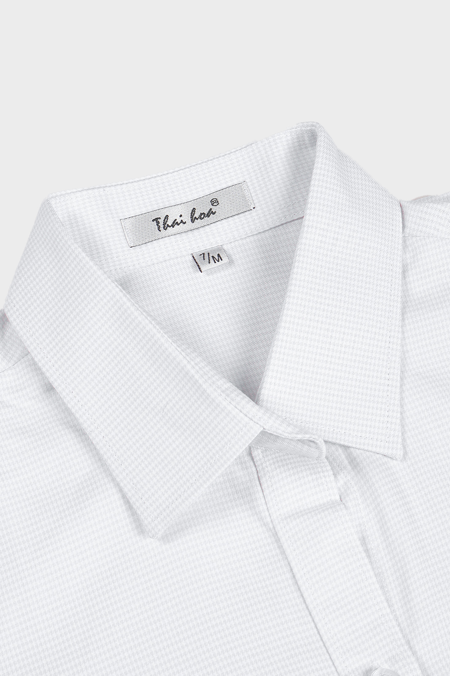 Áo sơ mi nữ ngắn tay Thái Hòa 25ASW-267 vải Bamboo Cotton cao cấp bản nẹp khuy có chiết eo cao cấp