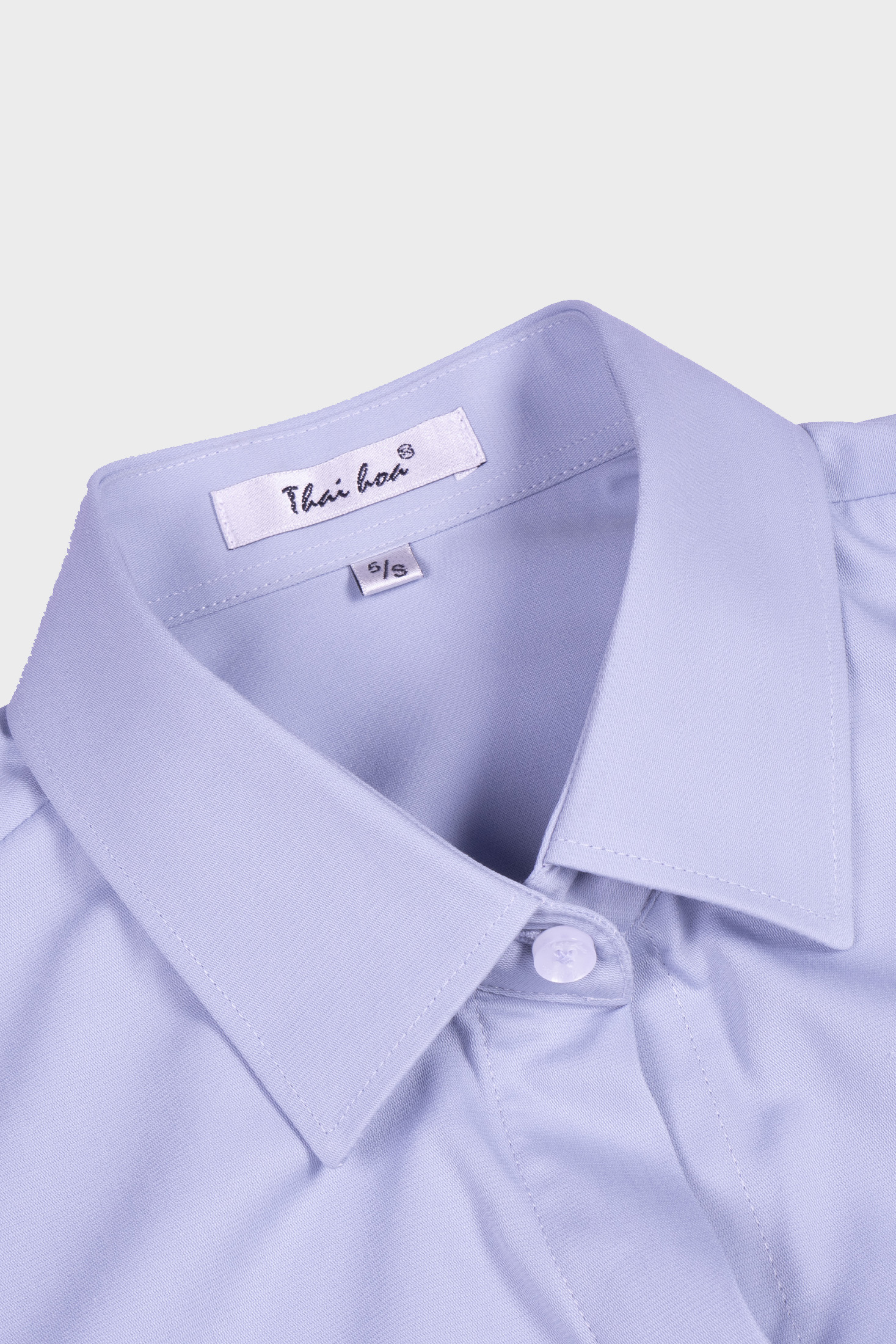 Áo sơ mi nữ 24ASW-246 ngắn tay sợi cotton phối poly vải trơn cao cấp nẹp khuy chiết ly eo Thái Hòa
