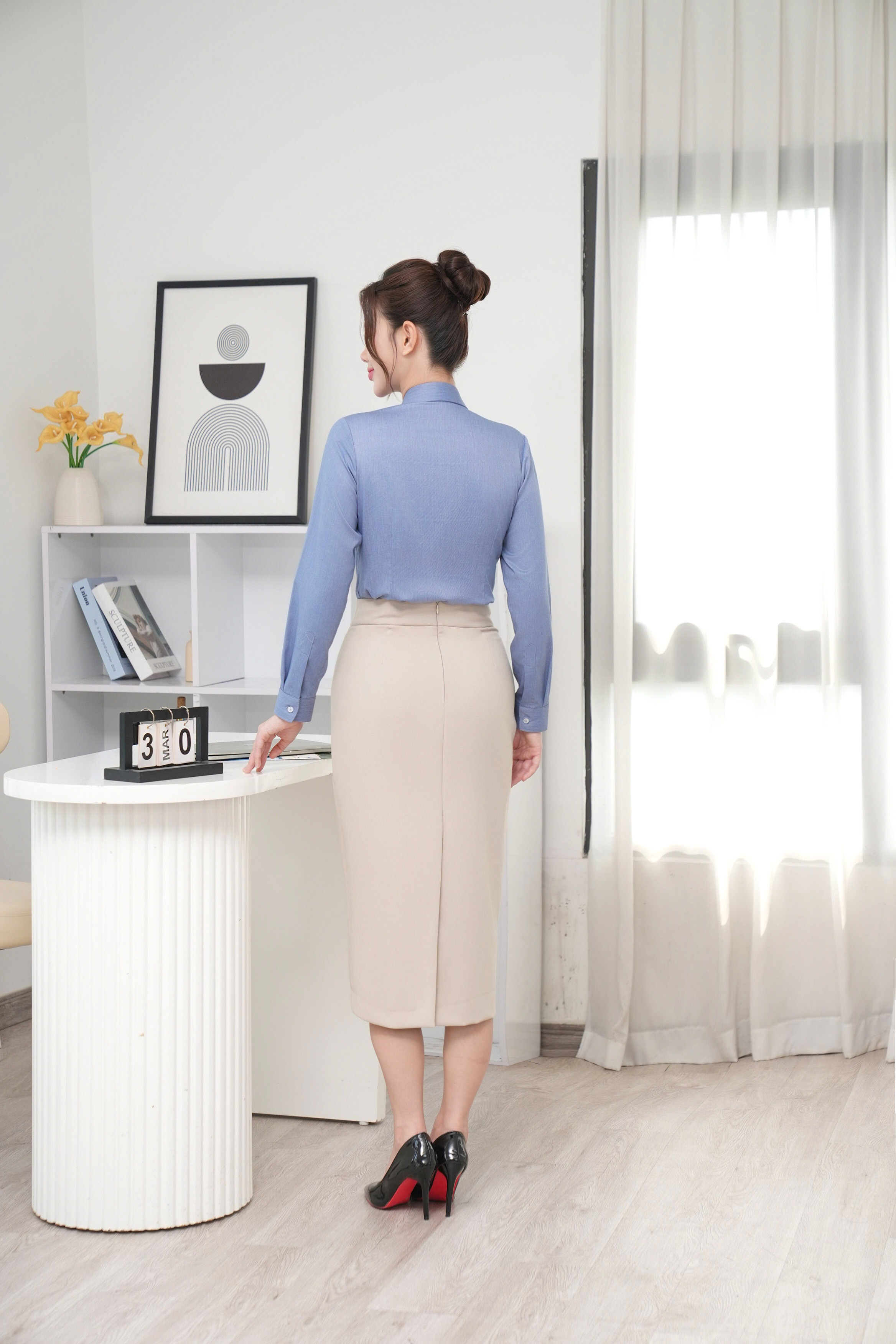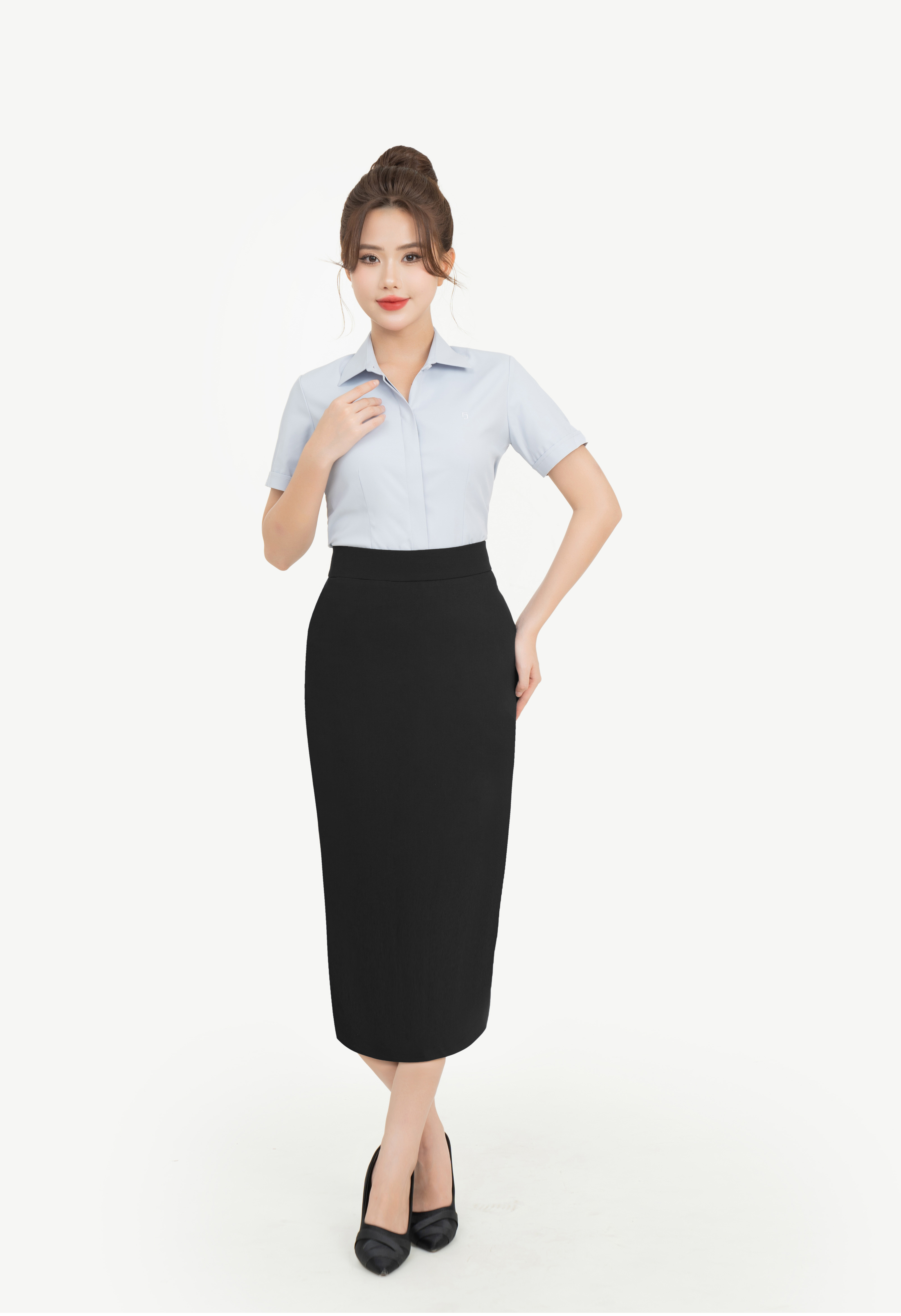 - Áo sơ mi nữ ngắn tay phom slimft cổ đức nẹp khuy che cúc mã 25CVW-289