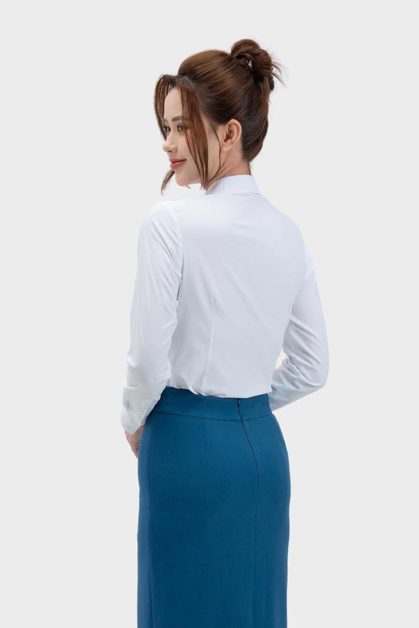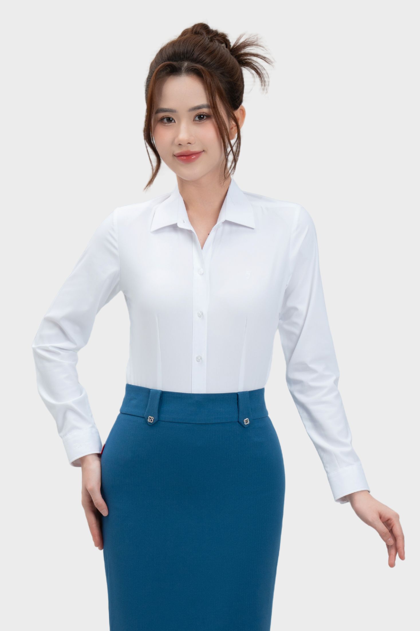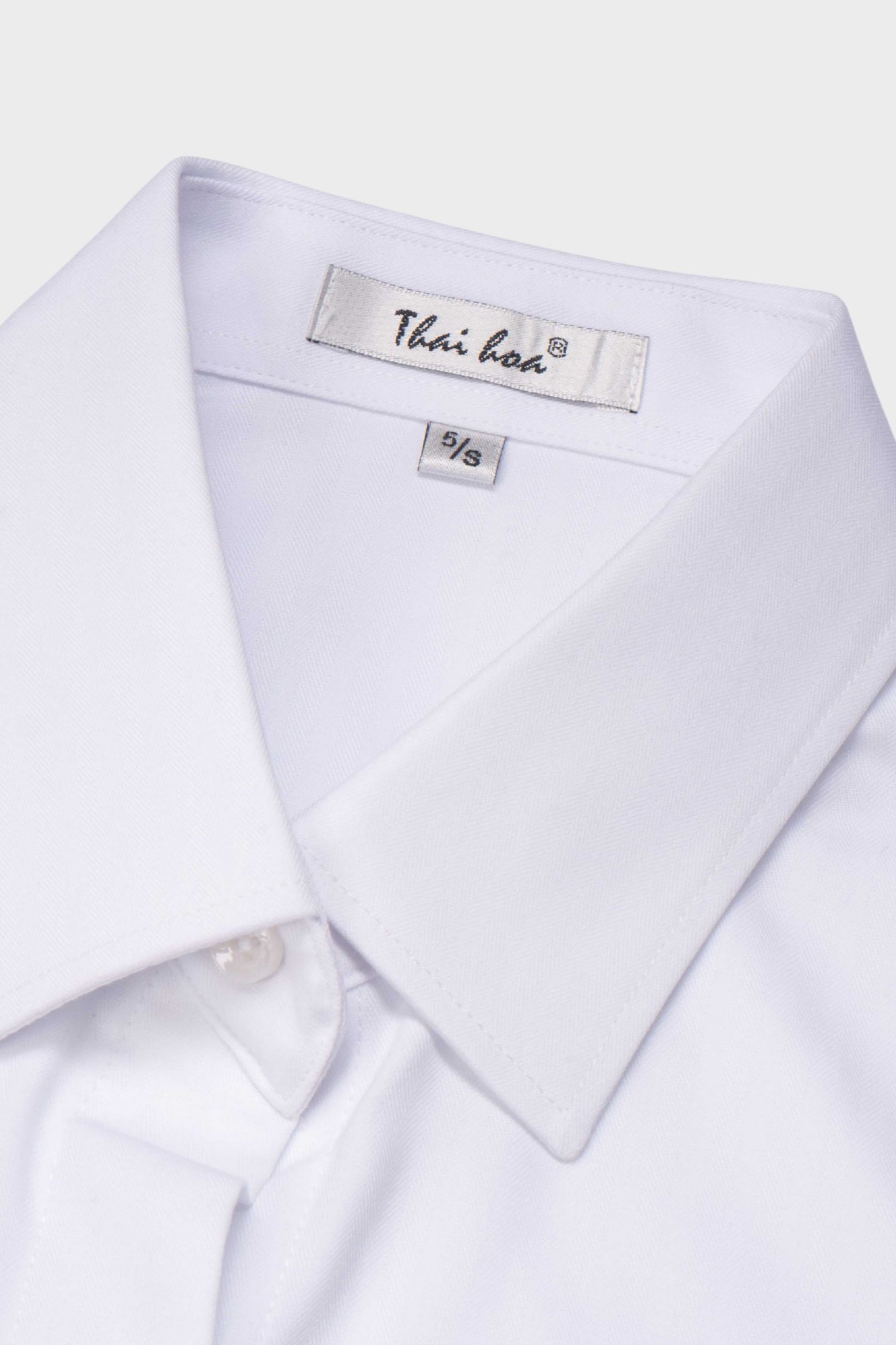 Áo sơ mi nữ 24ASW-246 ngắn tay sợi cotton phối poly vải trơn cao cấp nẹp khuy chiết ly eo Thái Hòa