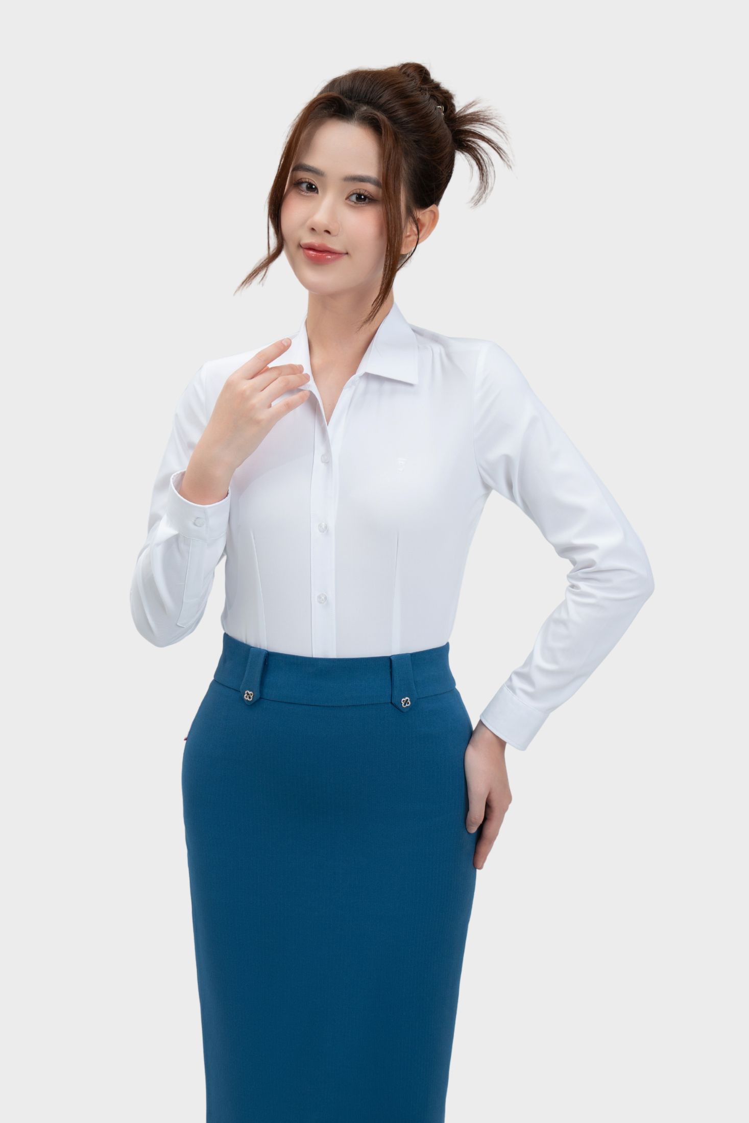Áo sơ mi nữ 25ASW-283 dài tay chất liệu modal họa tiết gân sọc form slimfit có nẹp khuy Thái Hòa