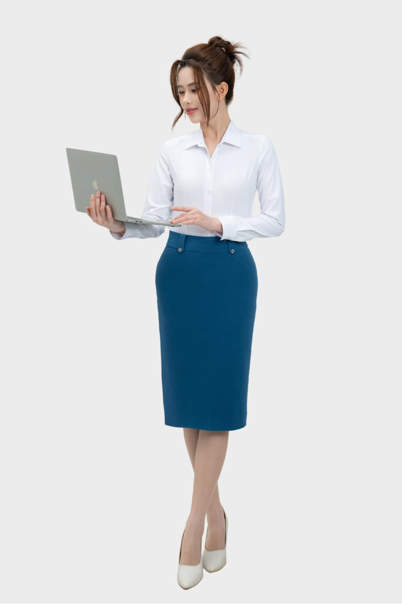 Chân váy bút chì nữ 2 lớp 25CVW-279 form bút chì ôm cạp cao xẻ trước chất liệu cao cấp Thái Hòa