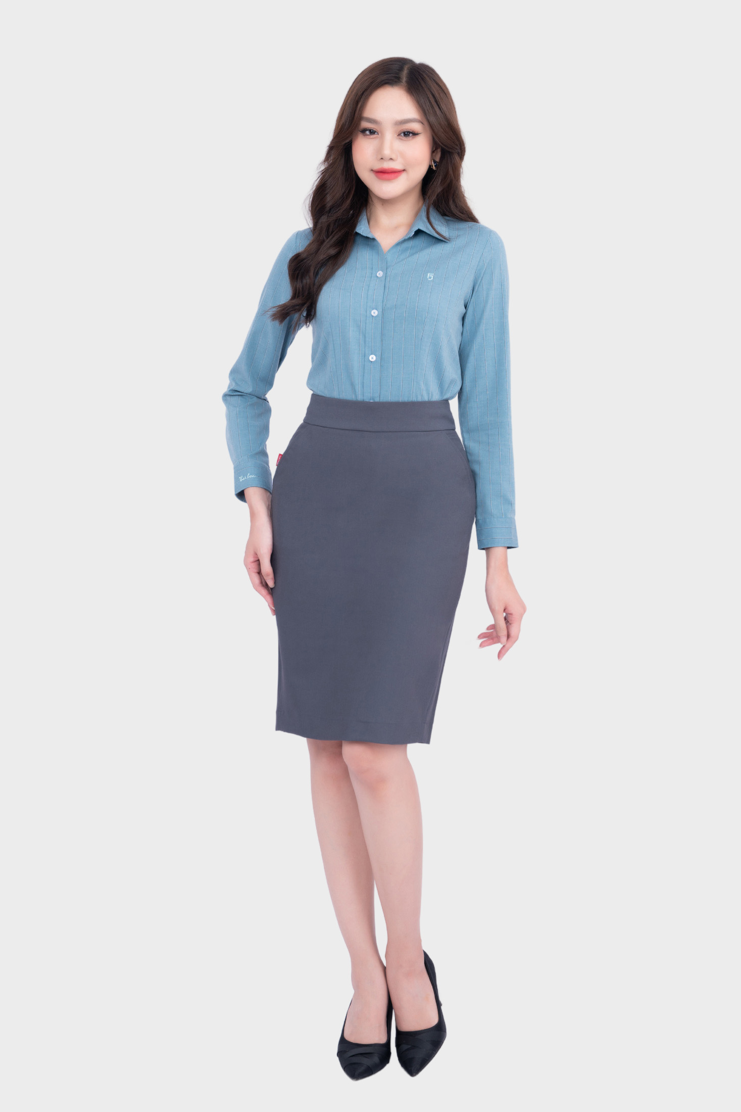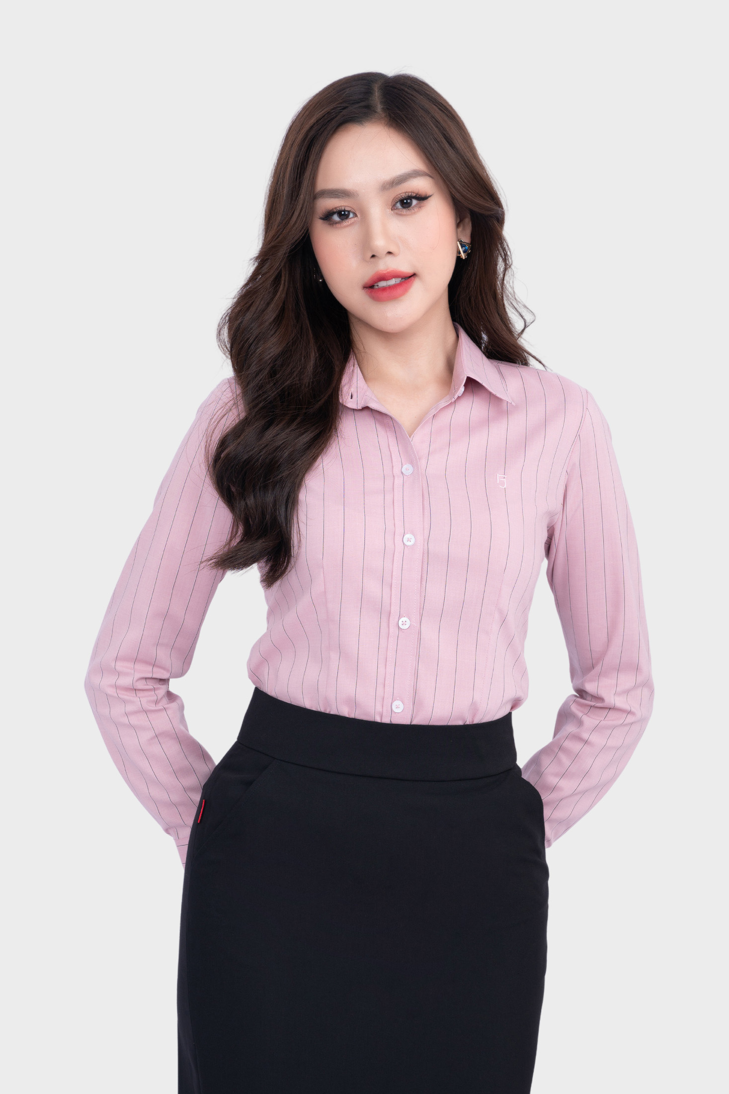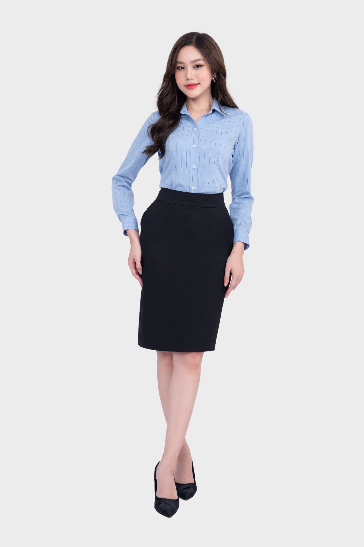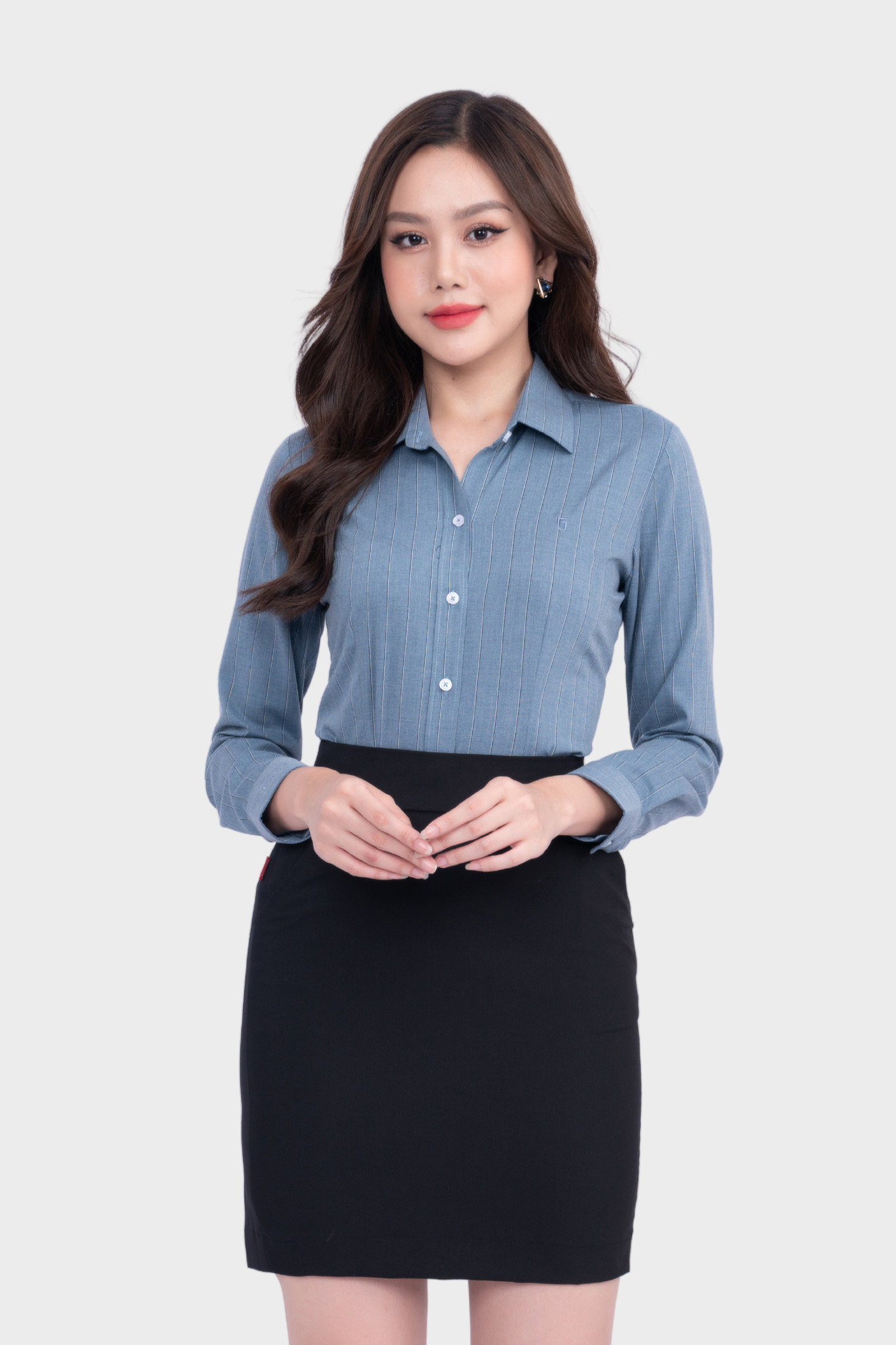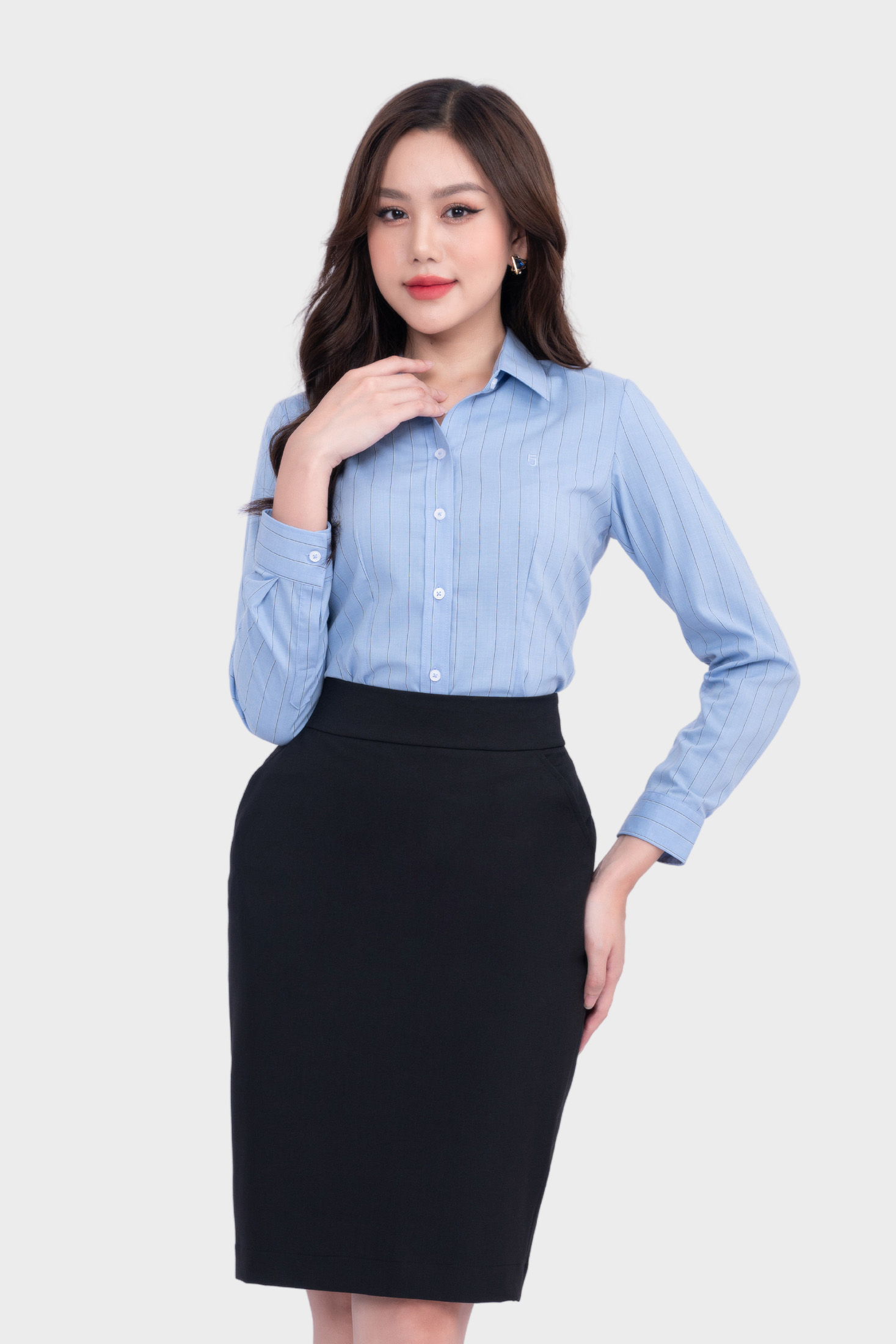 - Áo sơ mi nữ Thái Hòa thiết kế công sở dài tay phủ nano kẻ sọc form đẹp 23ASW-105