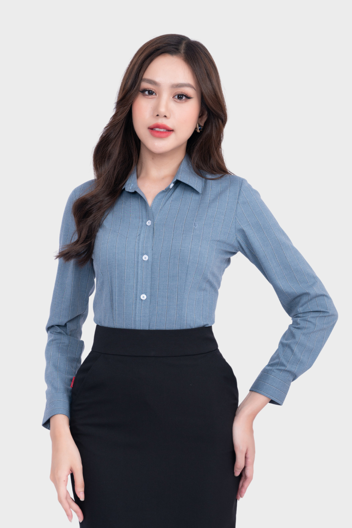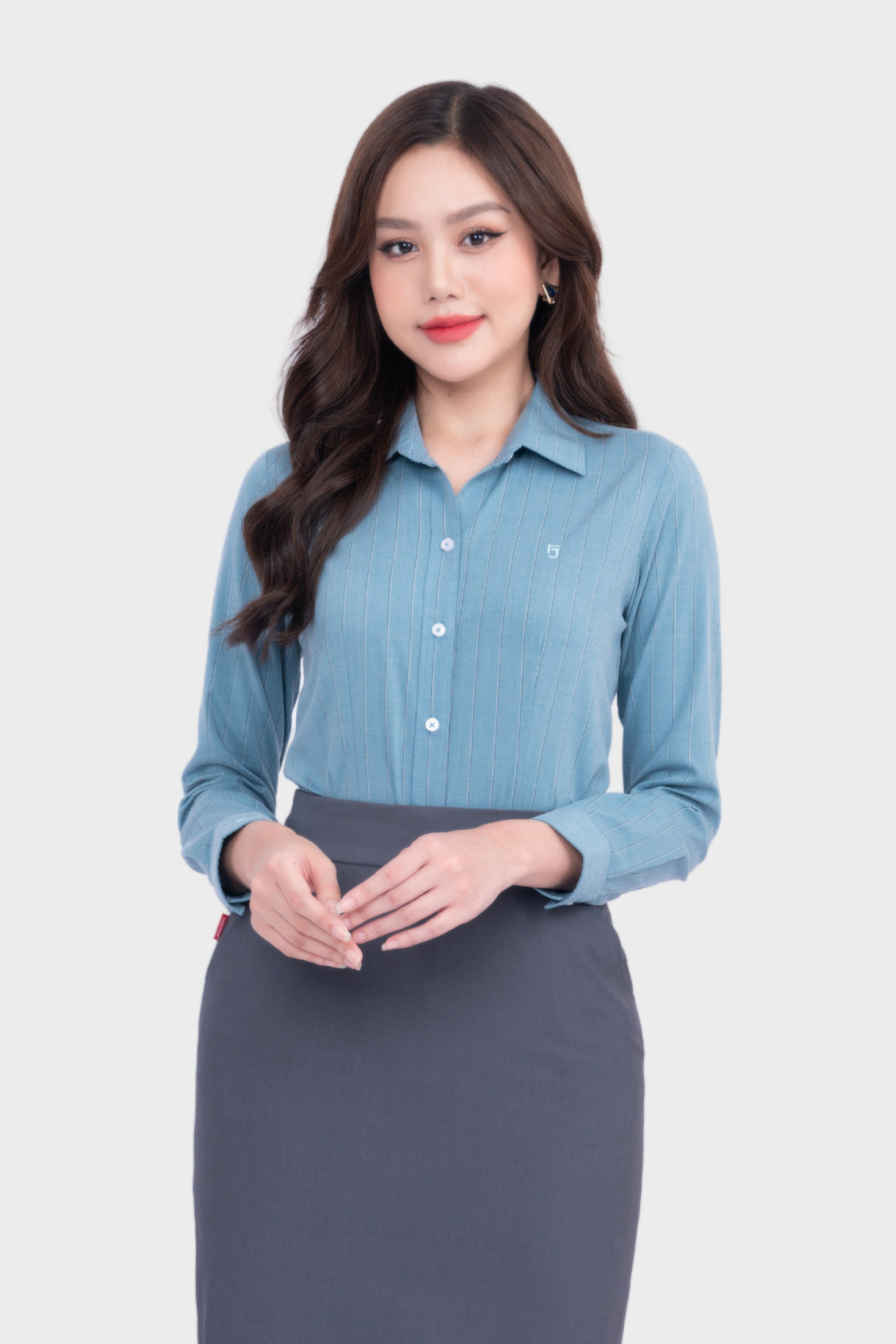 Áo sơ mi dài tay nữ AB Siro sọc ngang chìm cao cấp Thái Hòa 24ASW-247