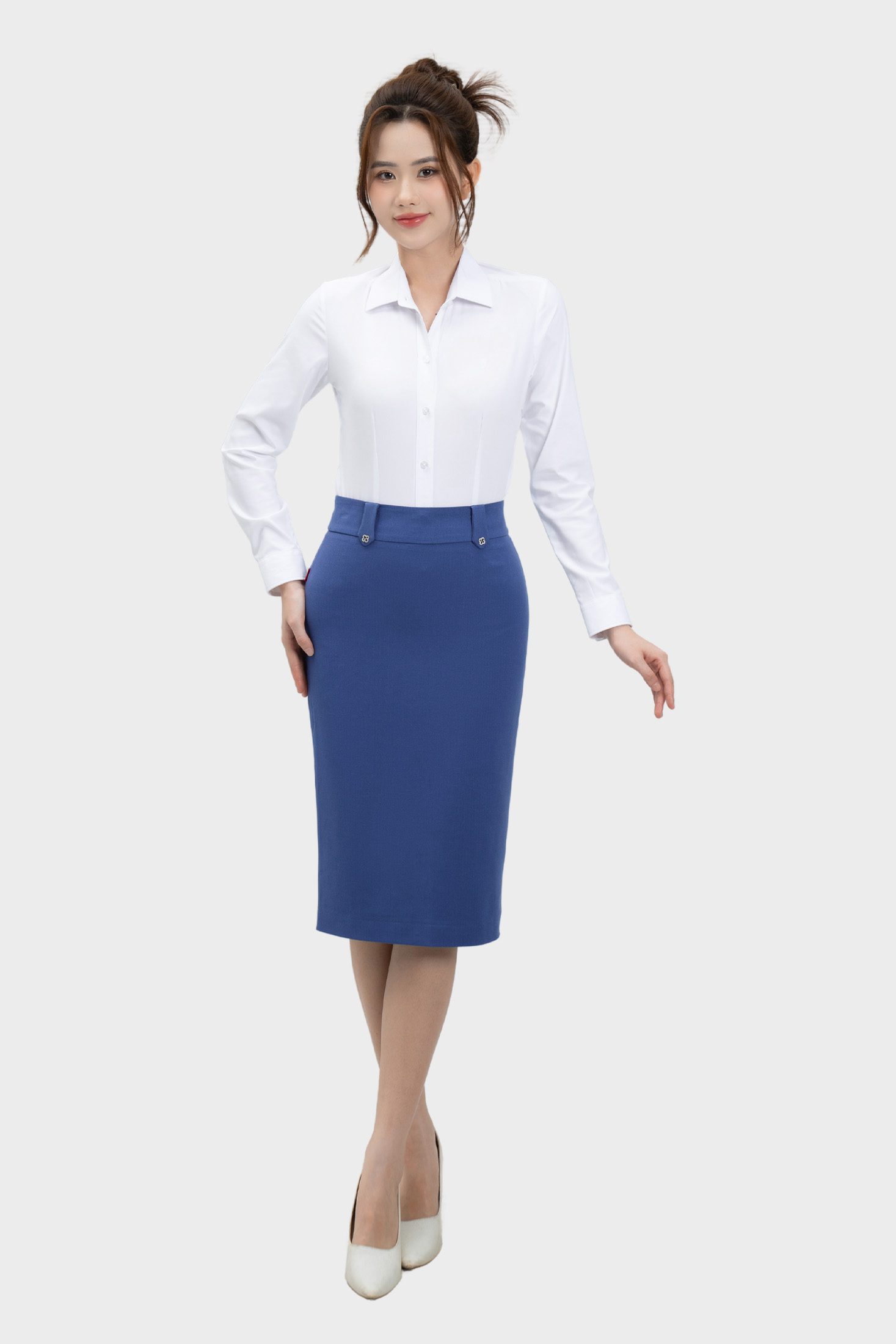 Chân váy nữ Thái Hòa 25CVW-271 dáng bút chì cạp cao 2 lớp form dài qua gối cạp 1 khuy